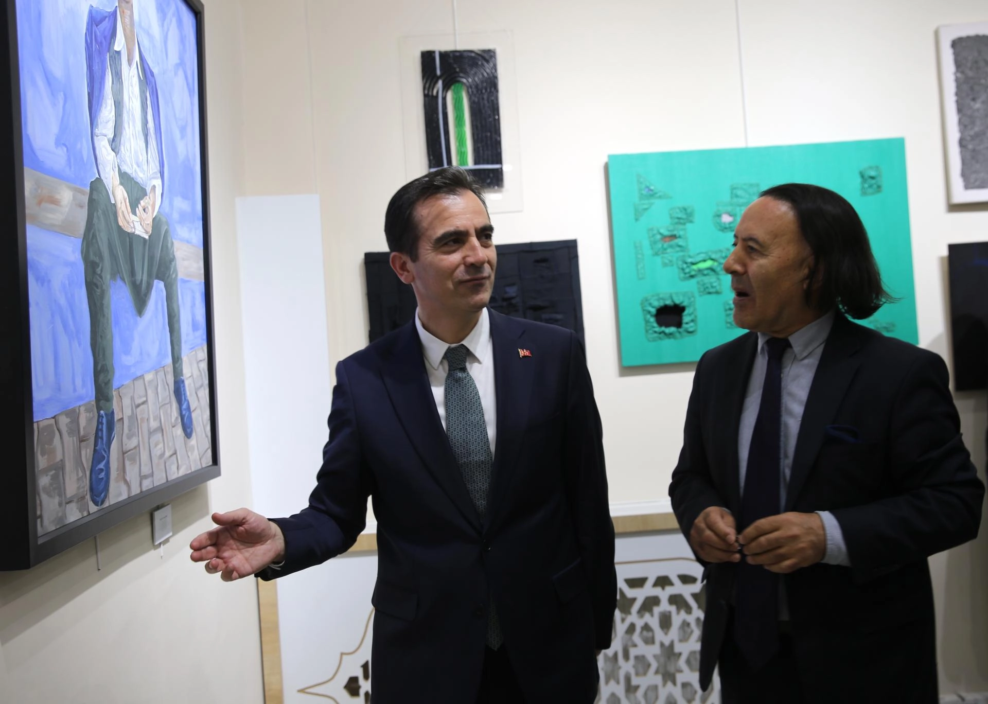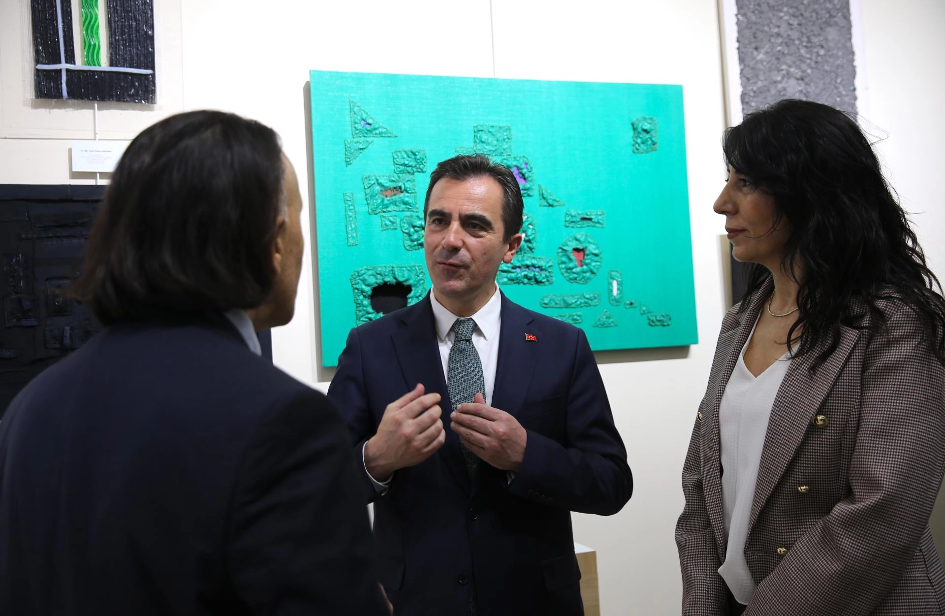 Vali Karakaya ve Elmastaş, ardından sergiyi gezerek eserler hakkında bilgi aldı.