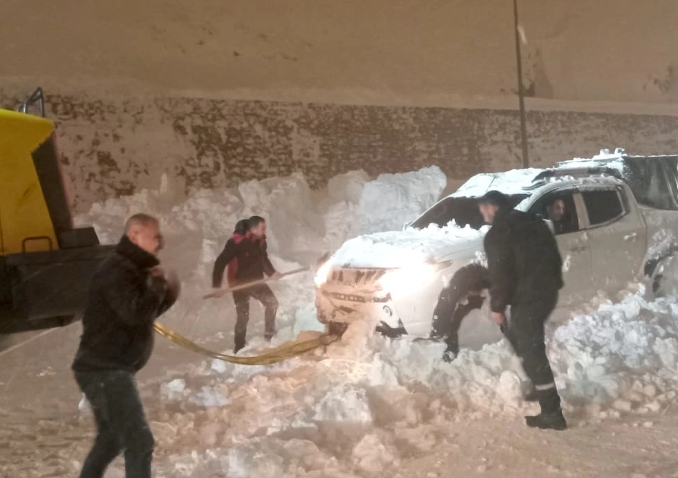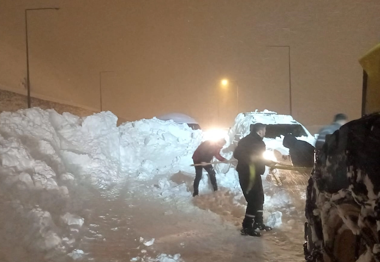 İhbar üzerine bölgeye o civarda karla mücadele çalışması yürüten Karayolları 118. Şube Şefliği ile belediye ekipleri sevk edildi.