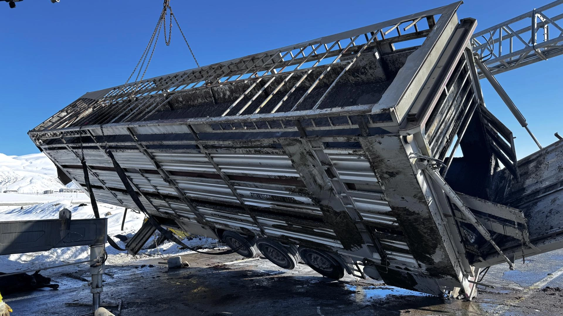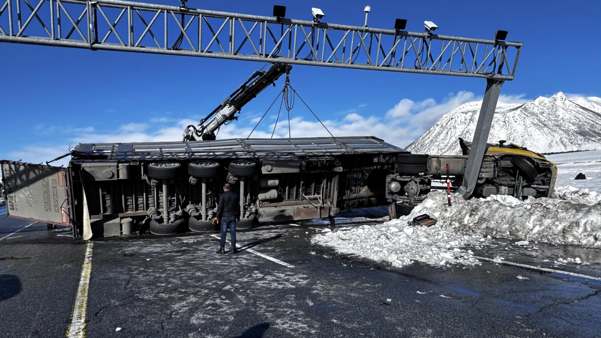 Tatvan istikametine giden S.K. yönetimindeki 33 AHS 757 ile Y.G'nin kullandığı 34 KZ 2105 plakalı büyükbaş hayvan yüklü tırlar, kontrolden çıkarak devrildi.