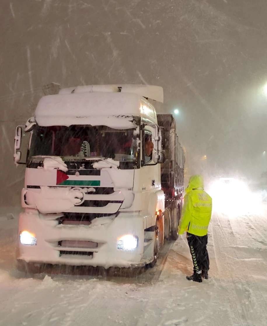 Trafik polisleri bölgeye gerek kar nedeniyle yolda kalan bazı sürücülere yardım etti, araçlarını mahsur kaldıkları yerden çıkardı.