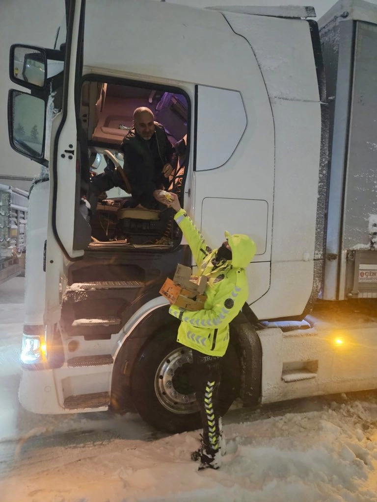BİTLİS (AA) - Bitlis'te etkisini sürdüren kar ve tipi nedeniyle yolda mahsur kalan sürücülerin yardımına trafik polisleri yetişti.