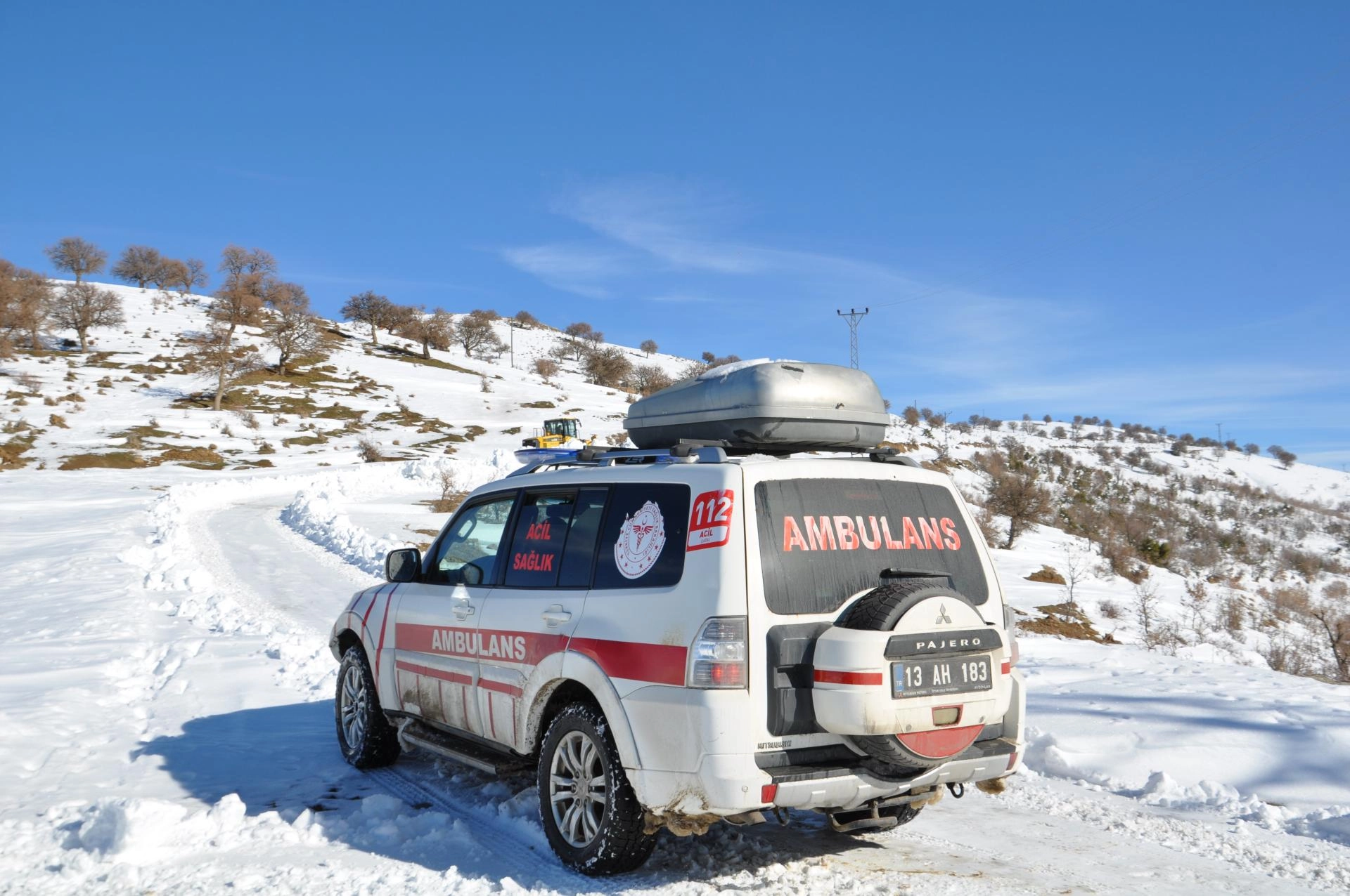 Kar kalınlığının yer yer 3 metreyi bulduğu bölgede 12 saat zorlu çalışma yürüten ekipler, köy yolunu açarak sağlık ekibinin köye ulaşmasını sağladı.