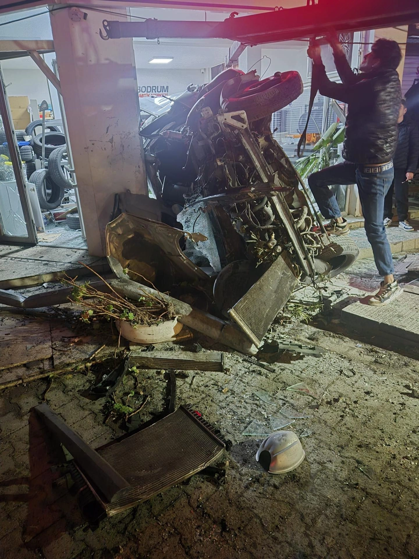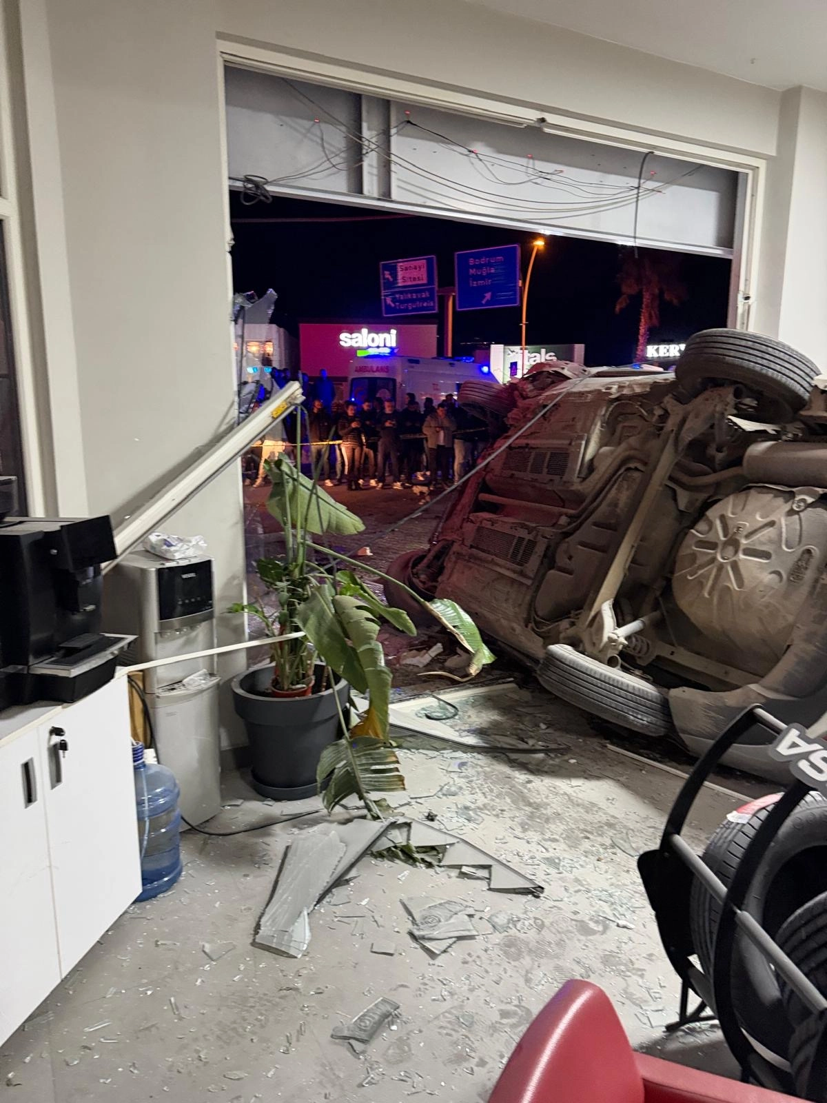 MUĞLA (AA) - Muğla'nın Bodrum ilçesinde kontrolden çıkan otomobilin iş yerine girmesi sonucu 1'i ağır 3 kişi yaralandı.