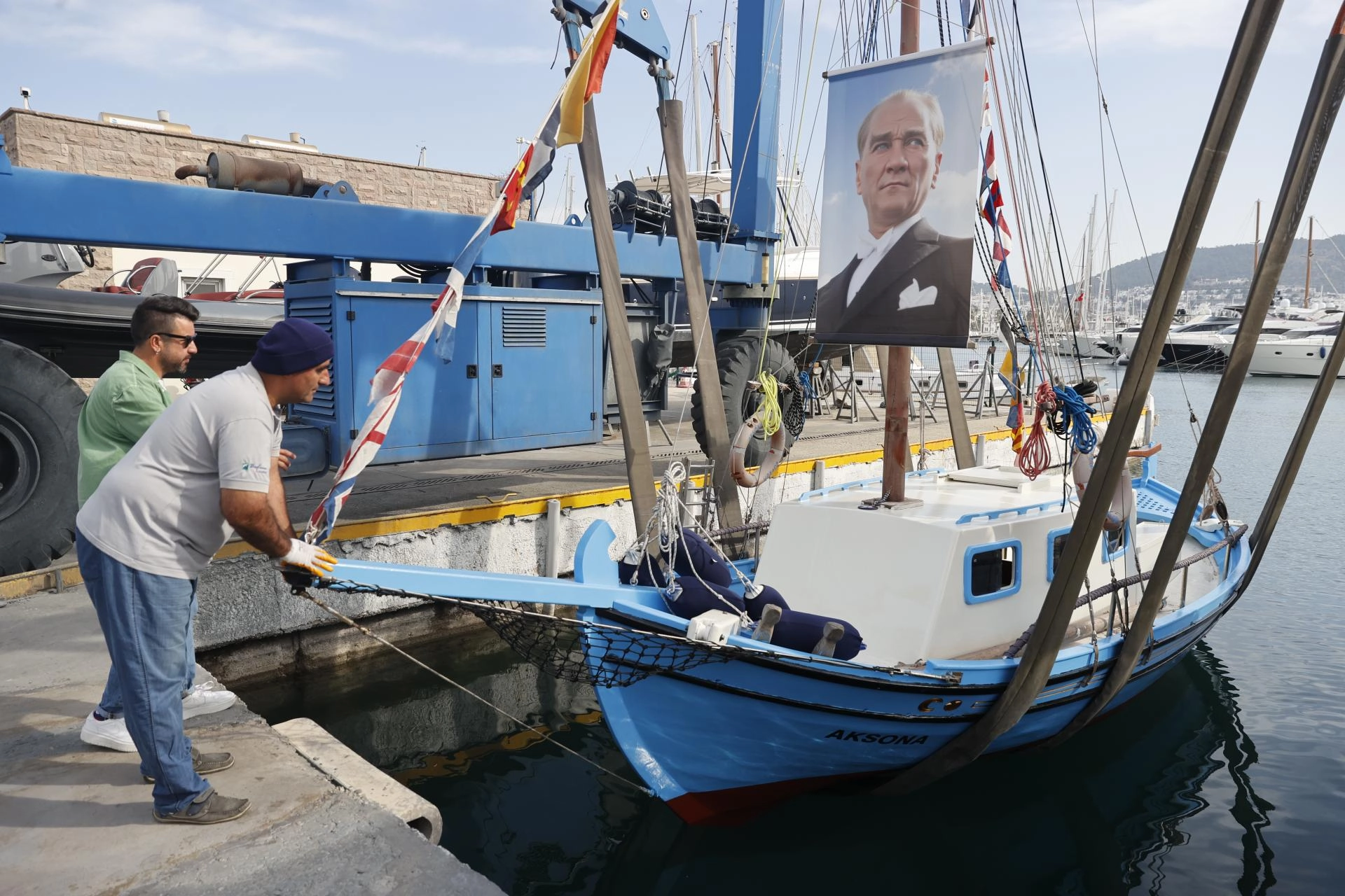 İlçedeki bir marinada düzenlenen törene, usta denizci Mehmet Baş'ın yanı sıra oğlu Fatih Baş ve marina çalışanları katıldı.