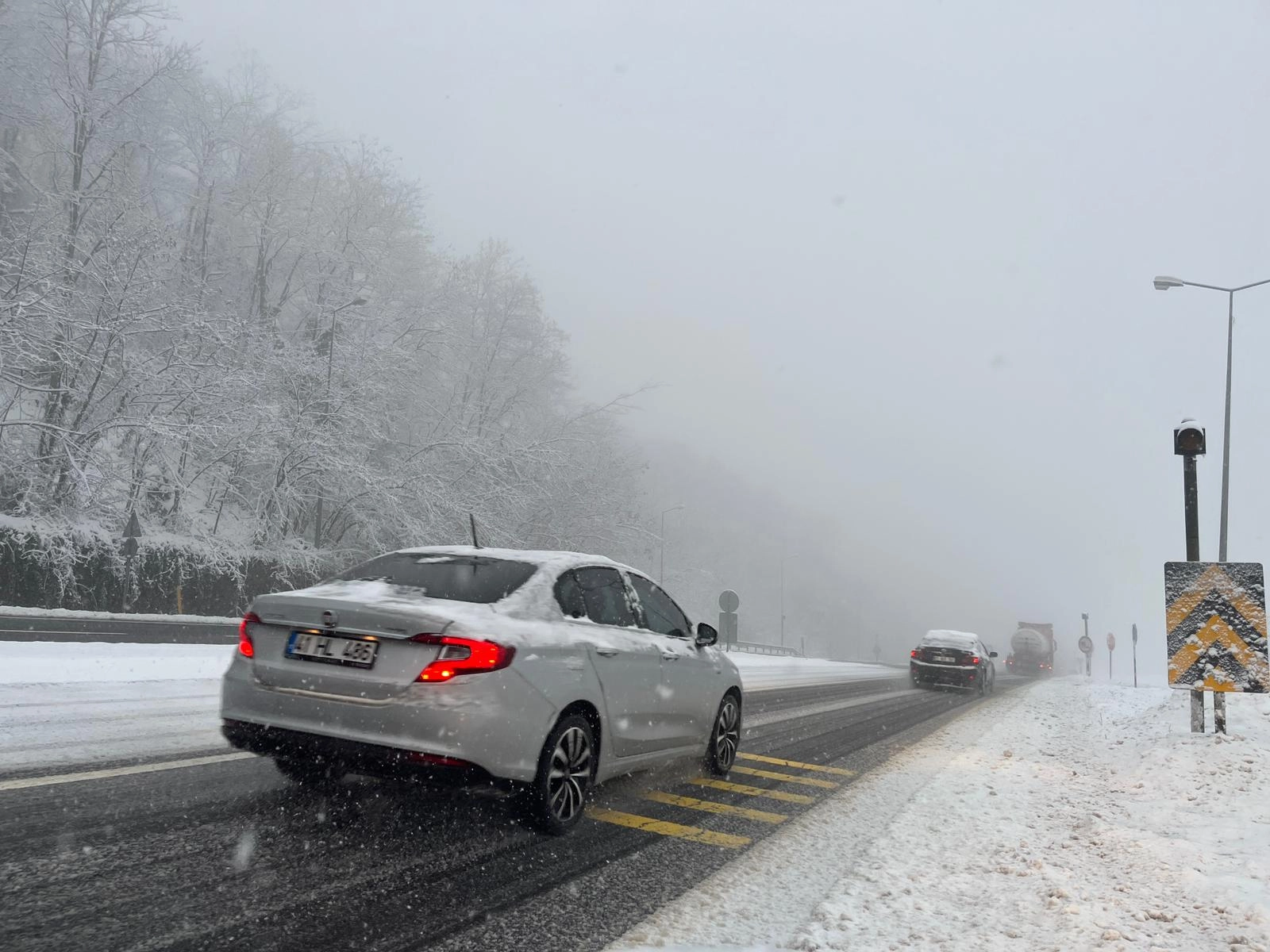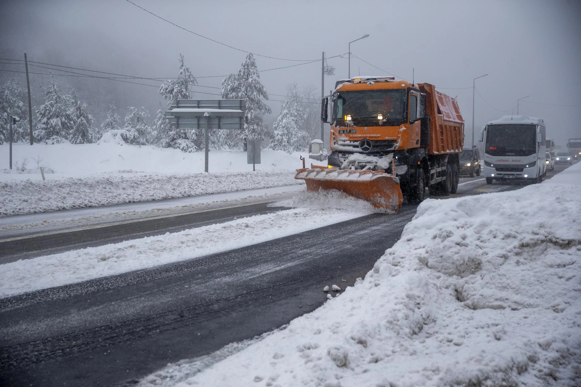 Güzergahın Bolu kesiminde yer alan Elmalık, Abant Kavşağı kesimleri ile otoyolun Bolu Dağı geçişi, tünel ve viyadükler kesimlerinde de kar yağışı görülüyor.