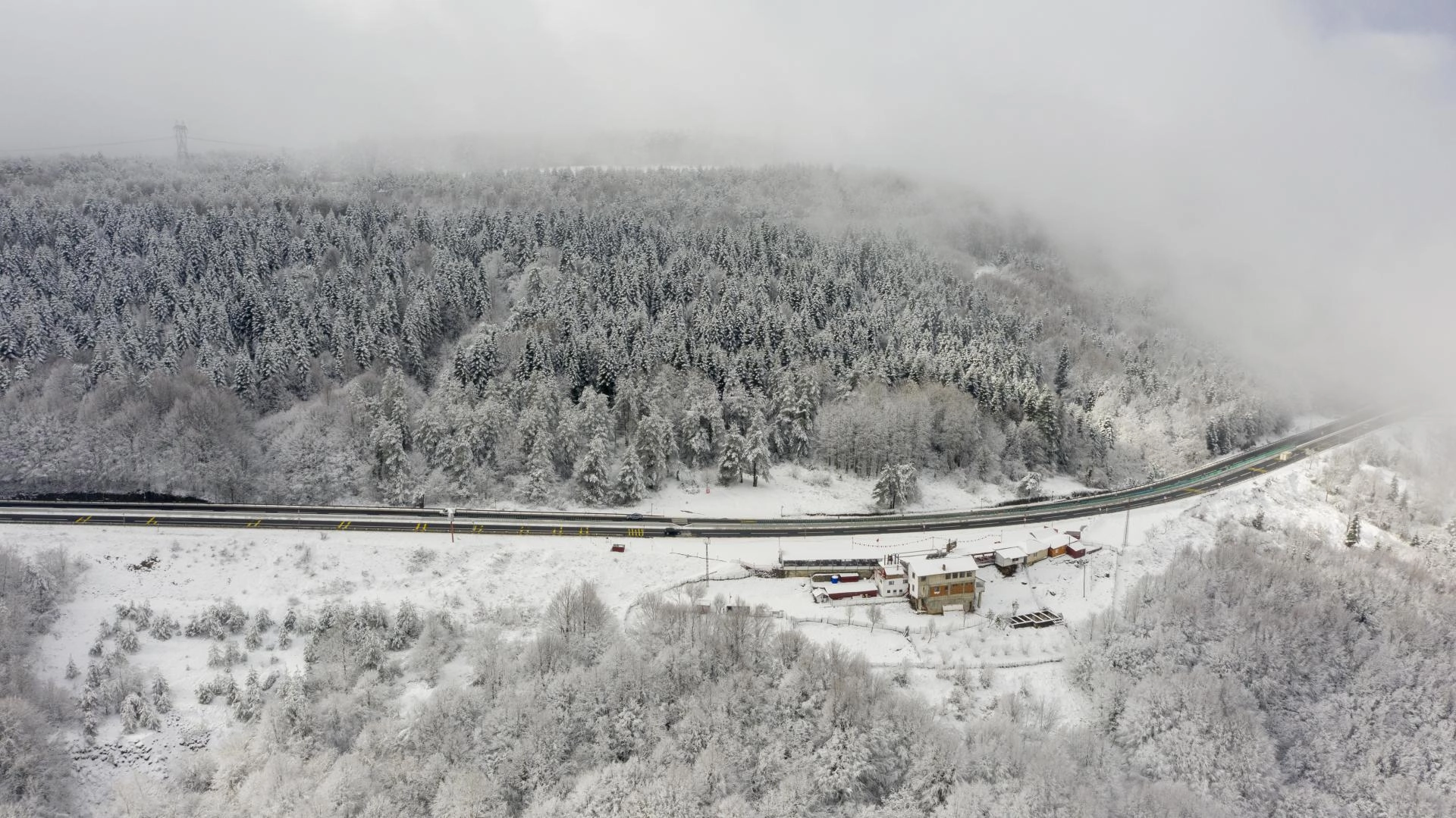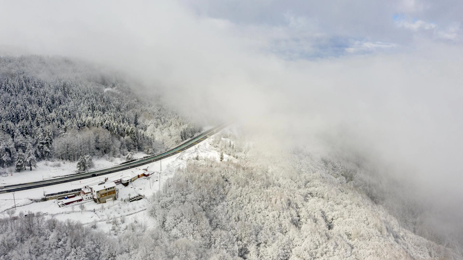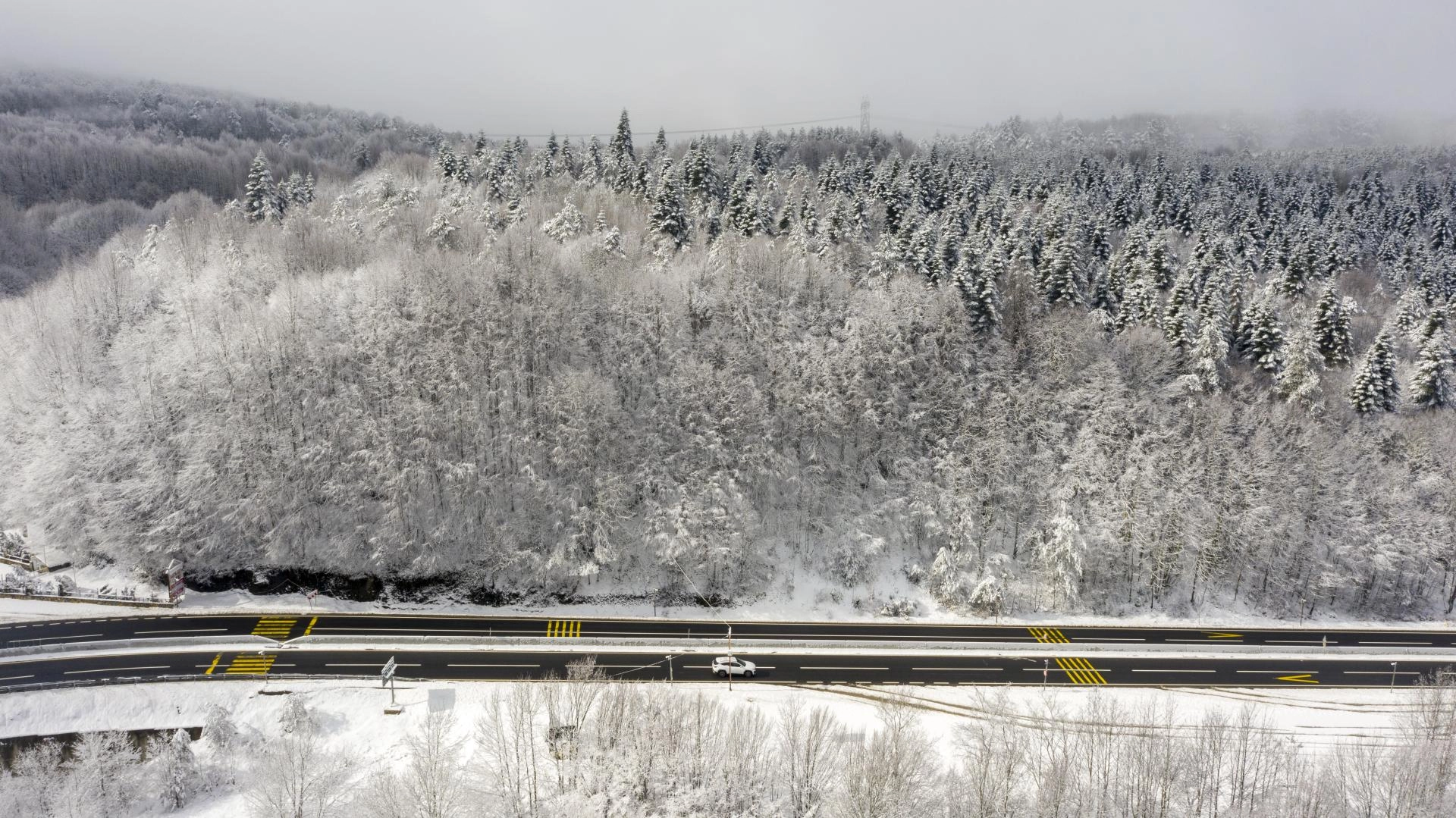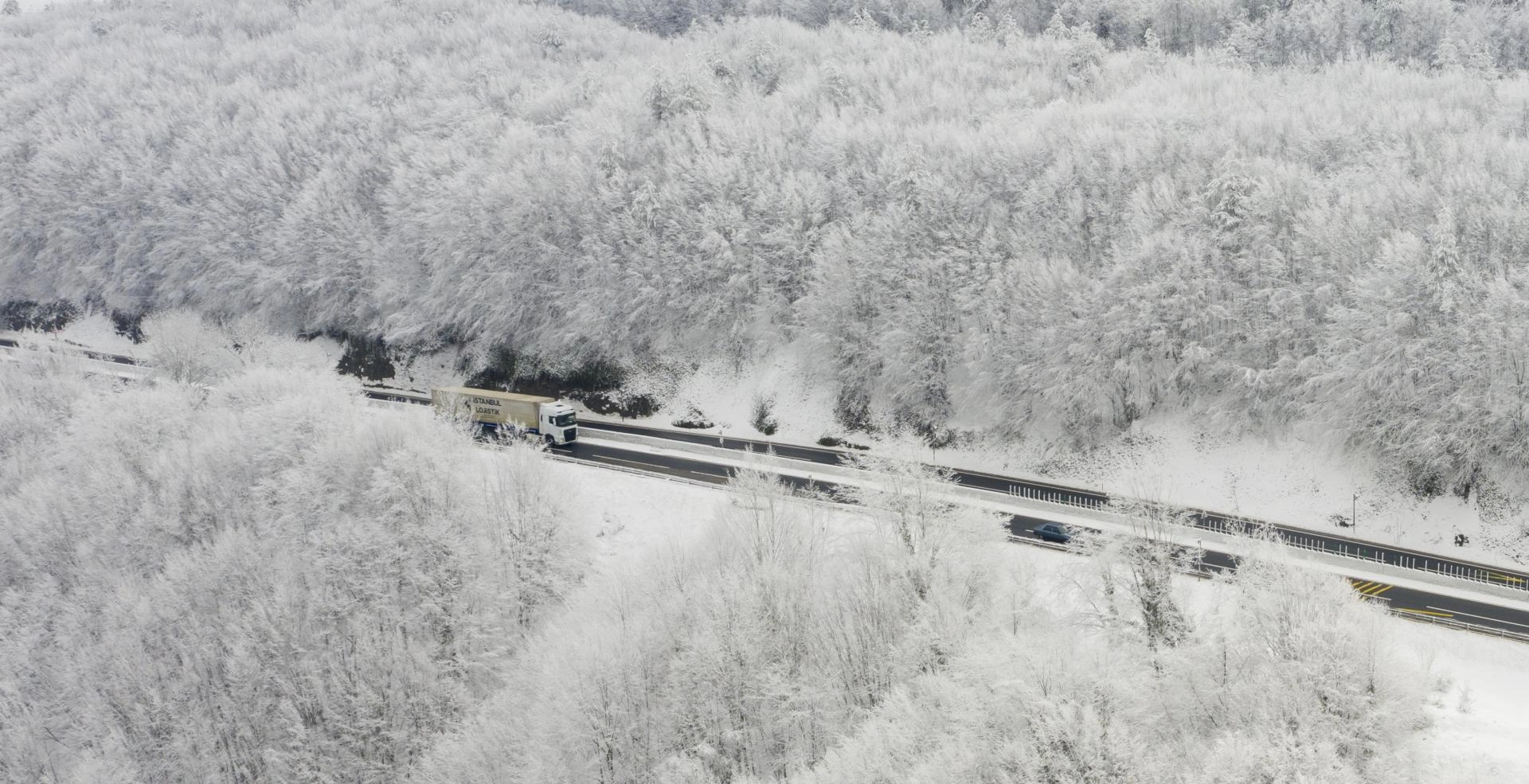 BOLU (AA) - İstanbul ve Ankara arasında ulaşımı sağlayan güzergahlardan D-100 kara yolunun Bolu Dağı kesiminde kar ve sis görüldü.