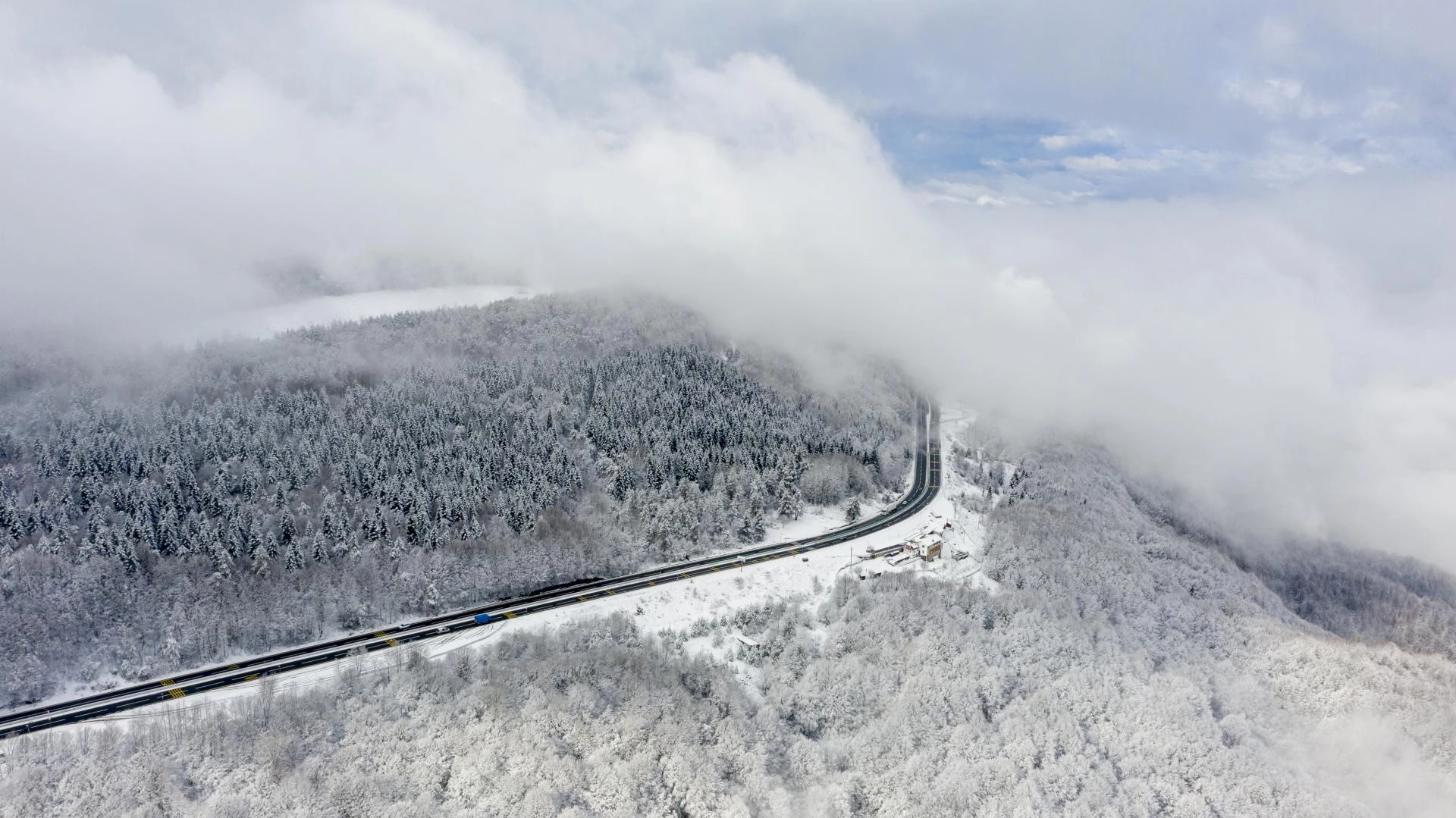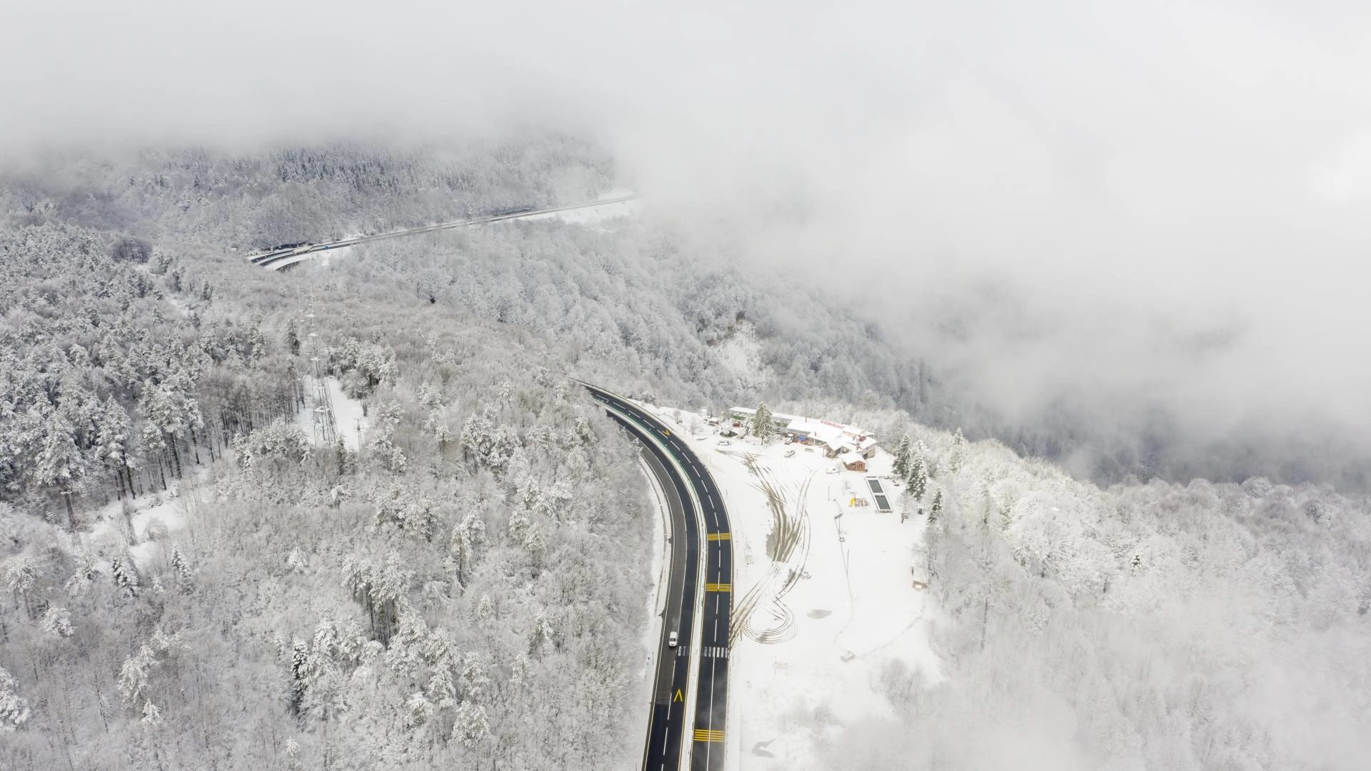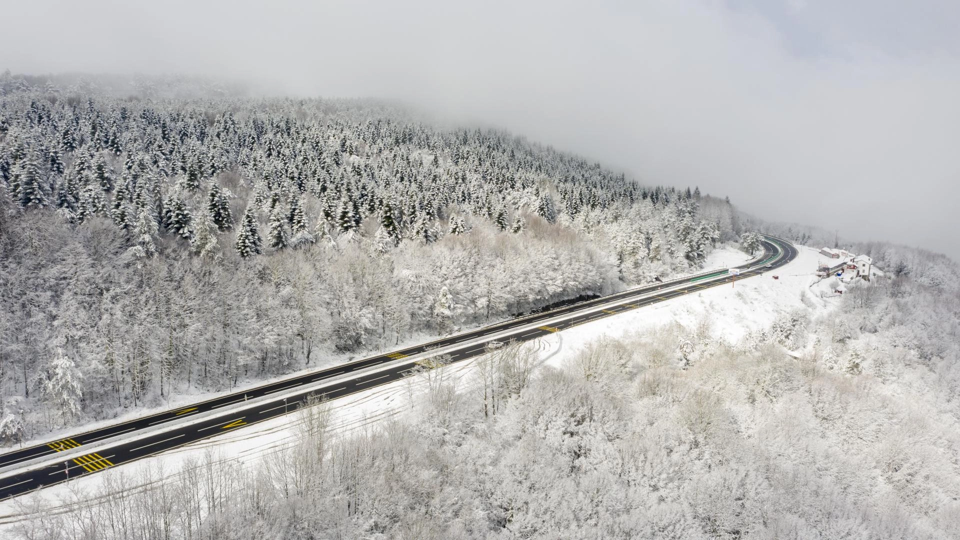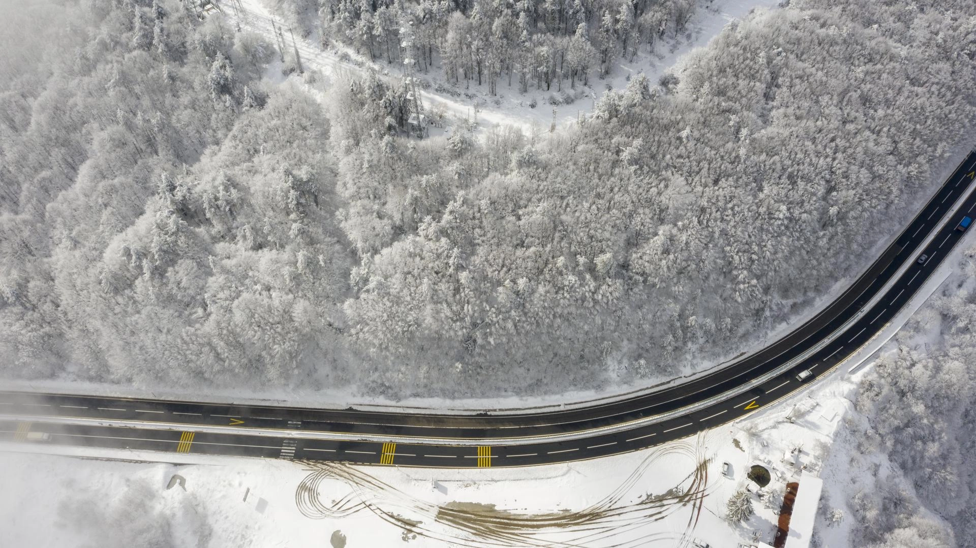 BOLU (AA) - İstanbul ve Ankara arasında ulaşımı sağlayan güzergahlardan D-100 kara yolunun Bolu Dağı kesiminde kar ve sis görüldü.