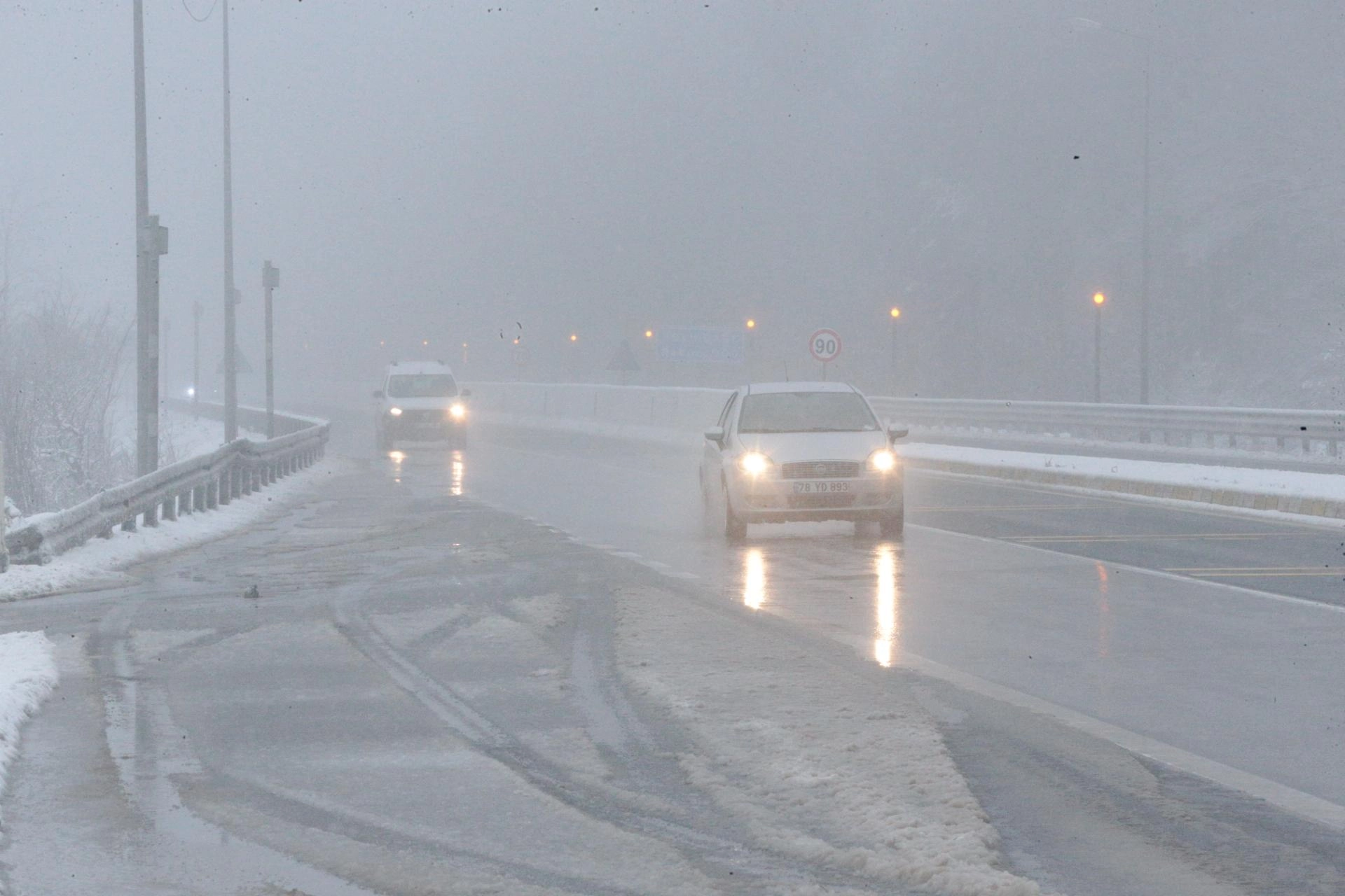 Kar yağışı, otoyolun Yumrukaya, Abant kavşağı, Bolu Dağı Tüneli ve viyadükler mevkisinde, D-100 kara yolunda ise Yumrukaya, Abant kavşağı, Elmalık, Bolu Dağı Polisevi, Bakacak ve Karanlıkdere kesimlerinde görülüyor.