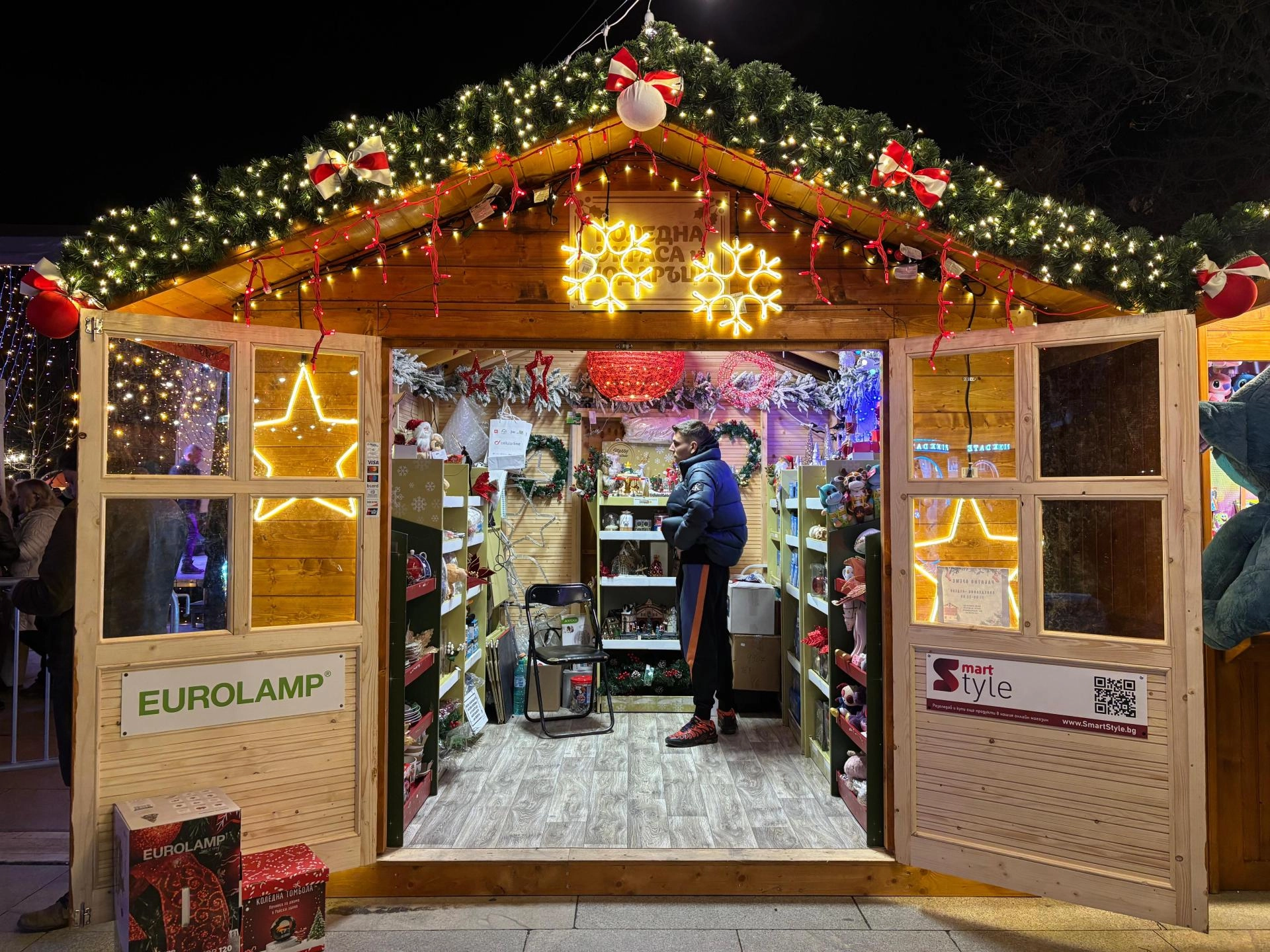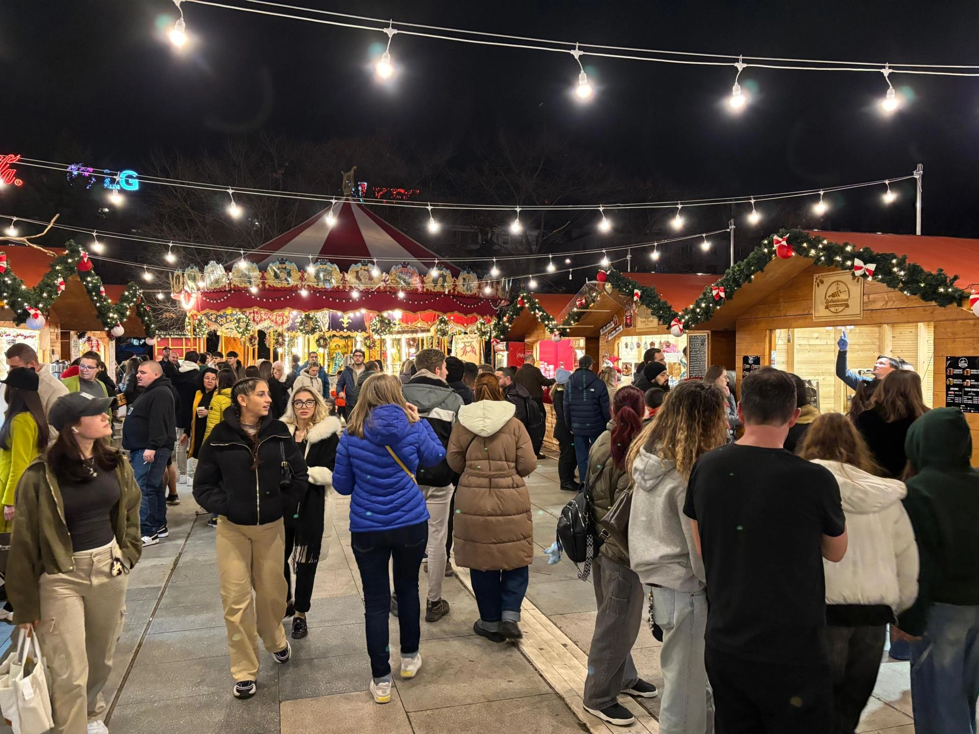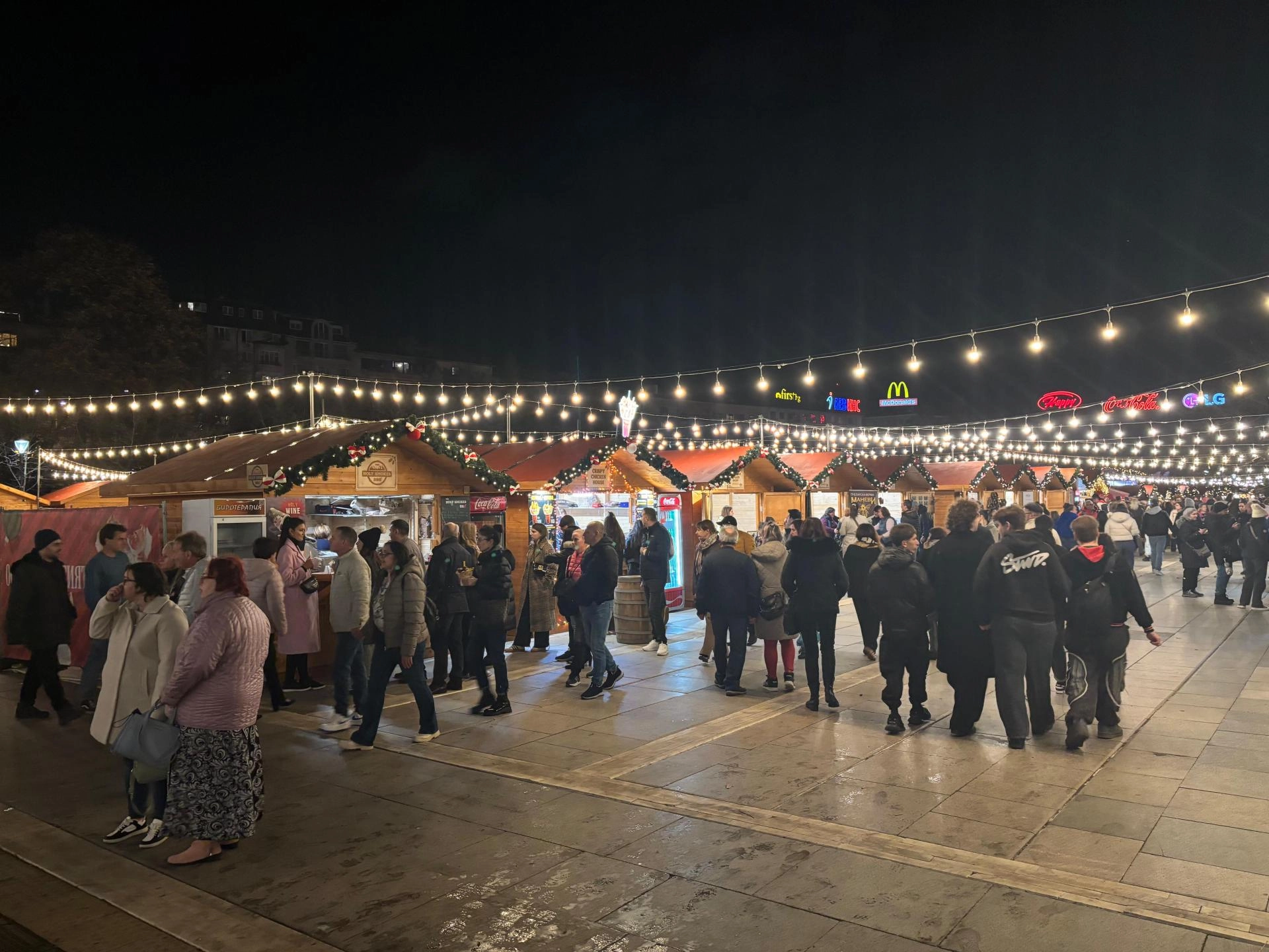 Sofya'daki Ulusal Kültür Sarayı (NDK) önünde kurulan Noel pazarında, hediyelik eşya, lezzetli yemek ve içeceklerin yer aldığı stantlar kuruldu.