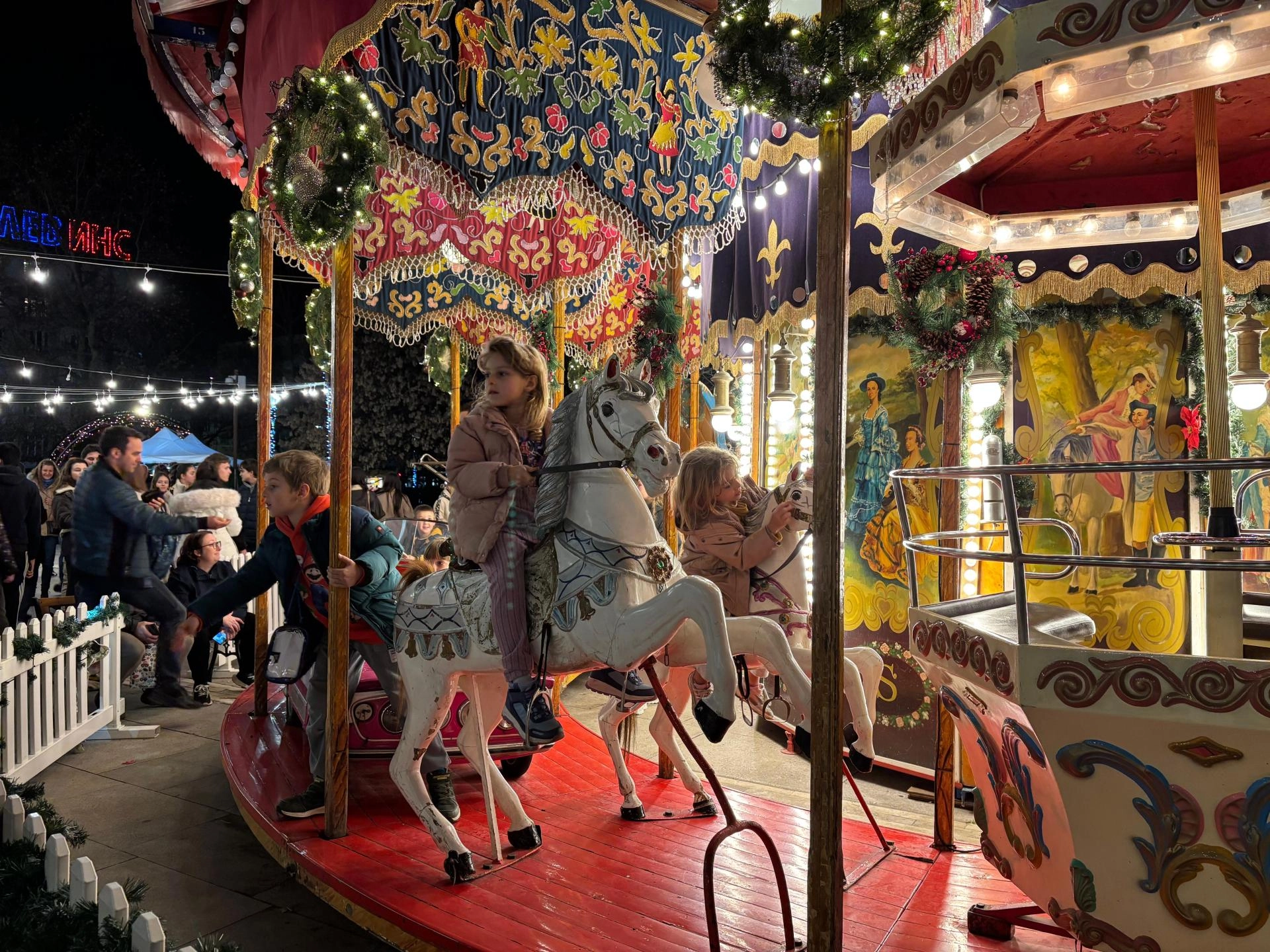 Müzik dinletisi ve gösterilerin yapıldığı pazarda, bu yıl buz pisti, dönme dolap ve Noel otobüsü ziyaretçilerin ilgisine sunuldu.