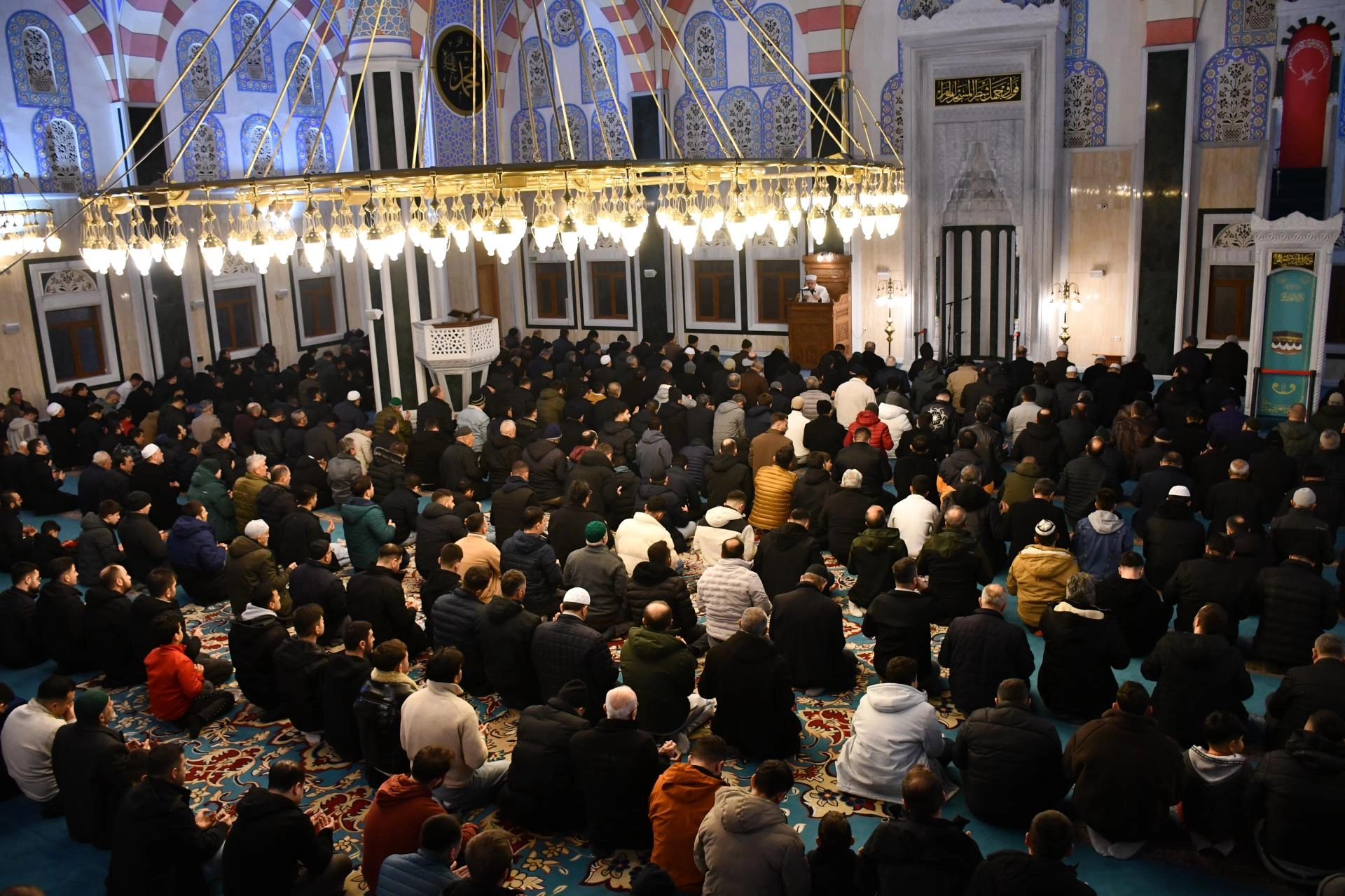 İl Müftülüğünce Kayıboyu Camisi'nde akşam namazının ardından cemaatin yoğun katılımıyla icra edilen programda, ilahiler okundu.