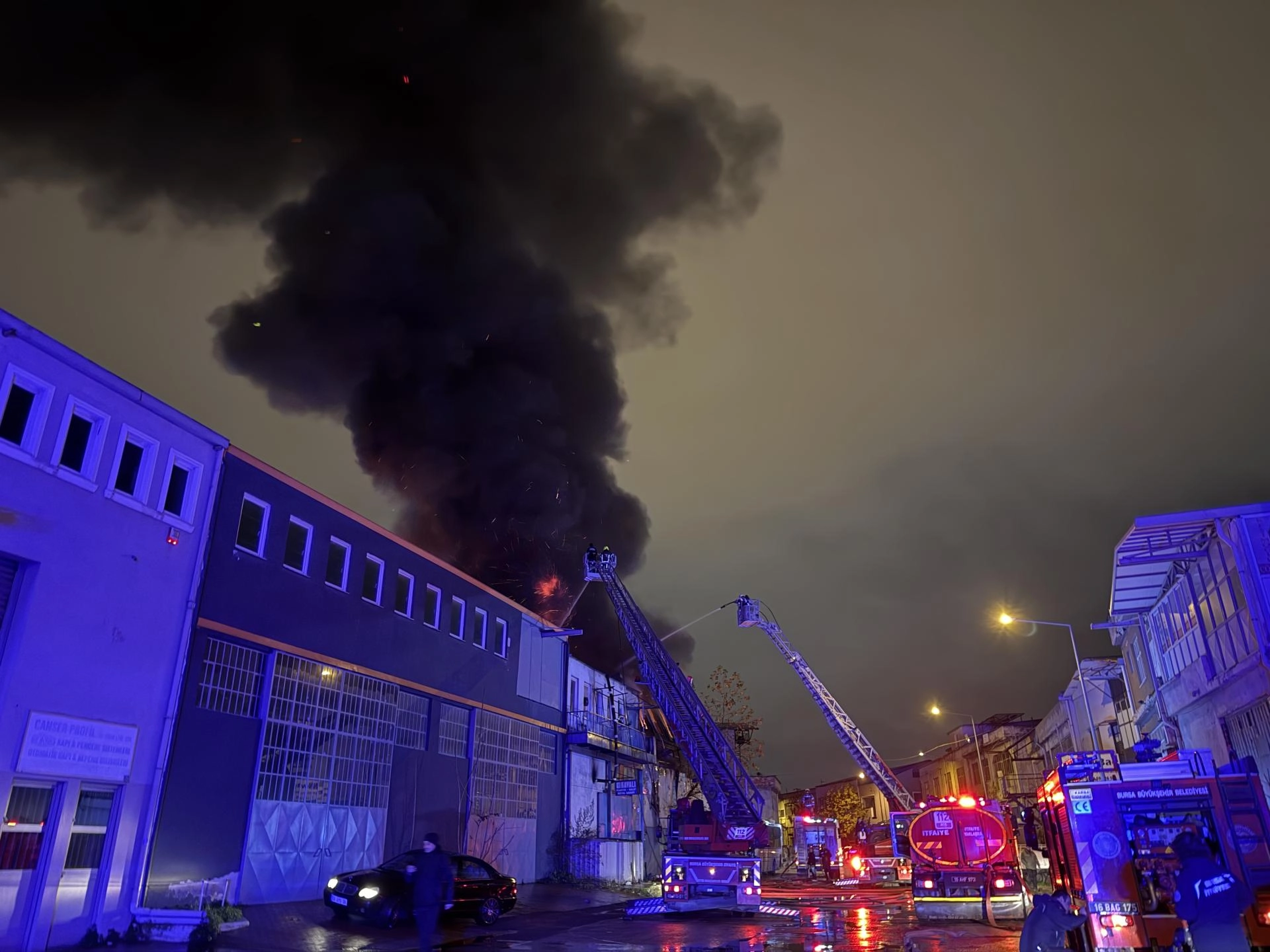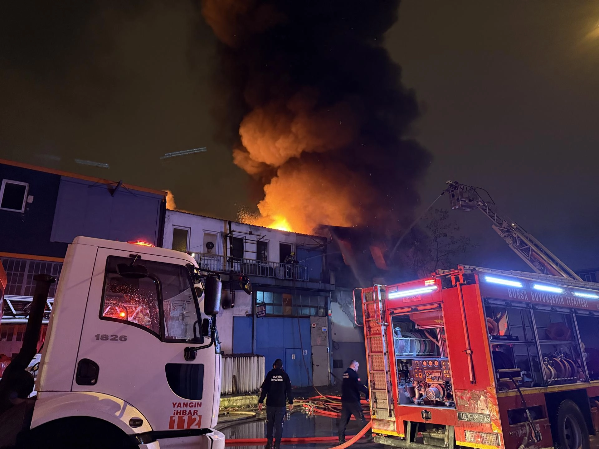 BURSA (AA) - Bursa'nın Osmangazi ilçesinde plastik kalıp atölyesinde başlayıp bitişikteki iş yerine sıçrayan yangına müdahale ediliyor.