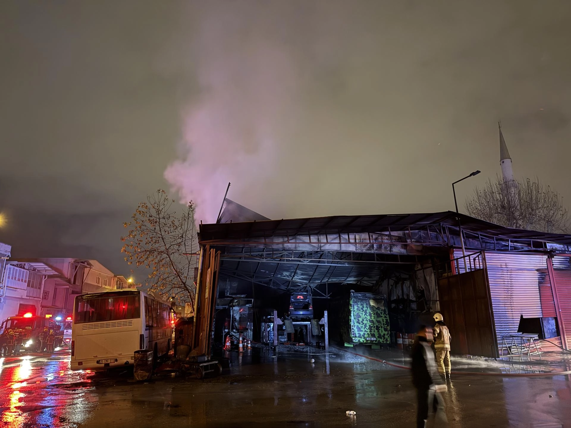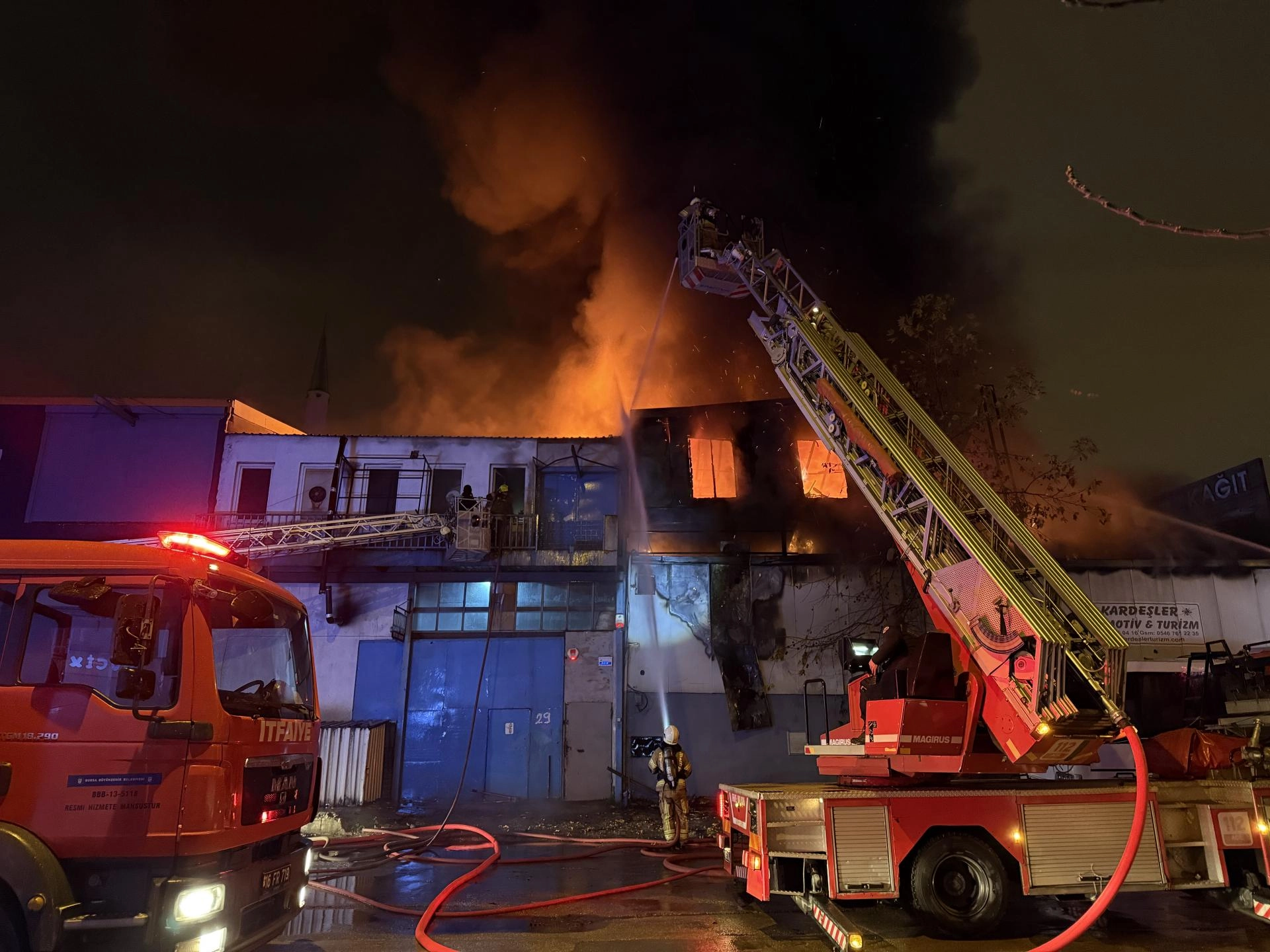 Kısa sürede büyüyen yangın, bitişikteki çelik kapı imalatı yapan bir iş yerine sıçradı.