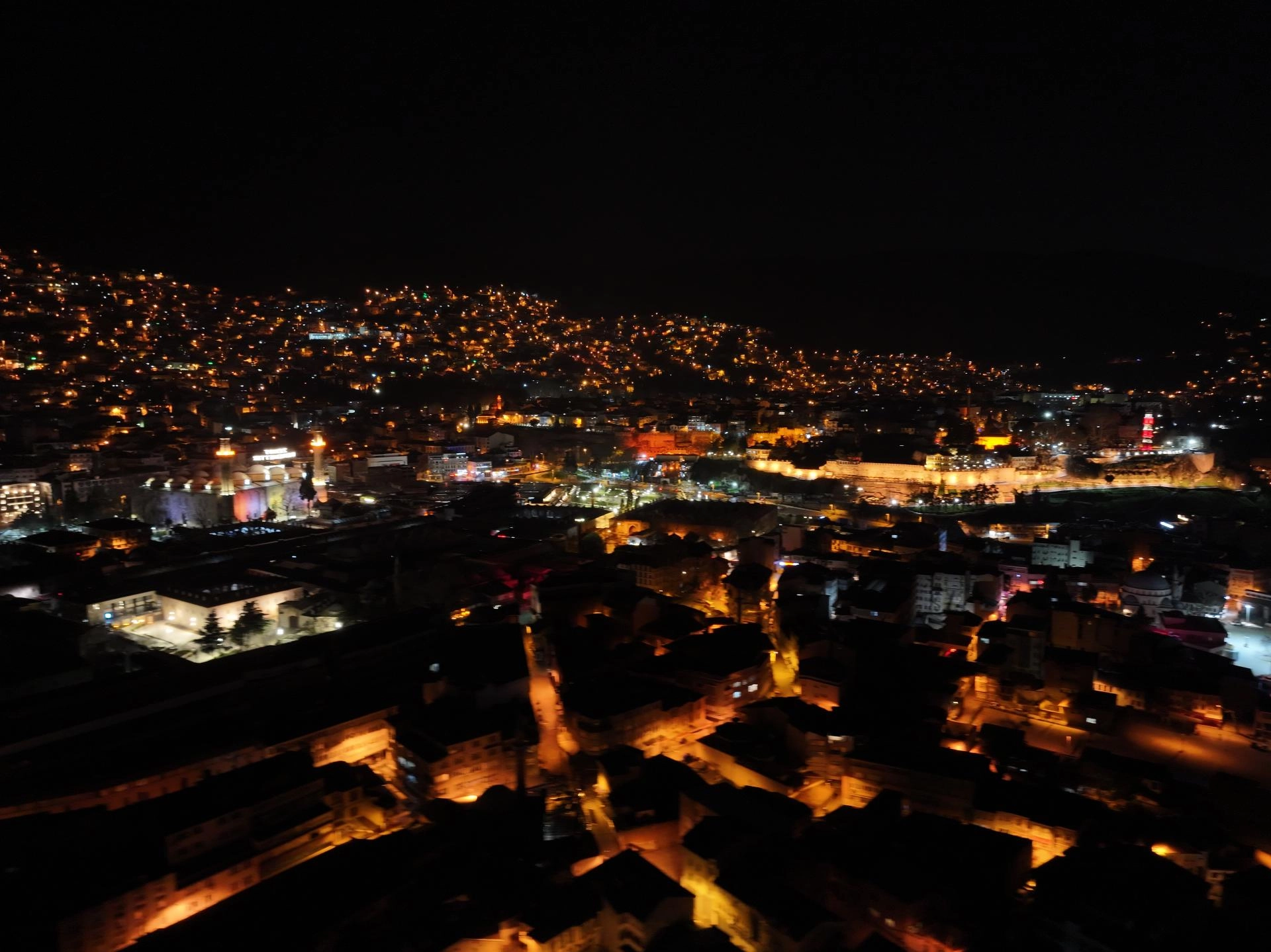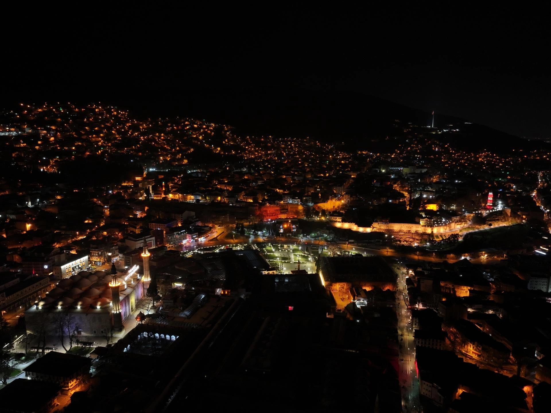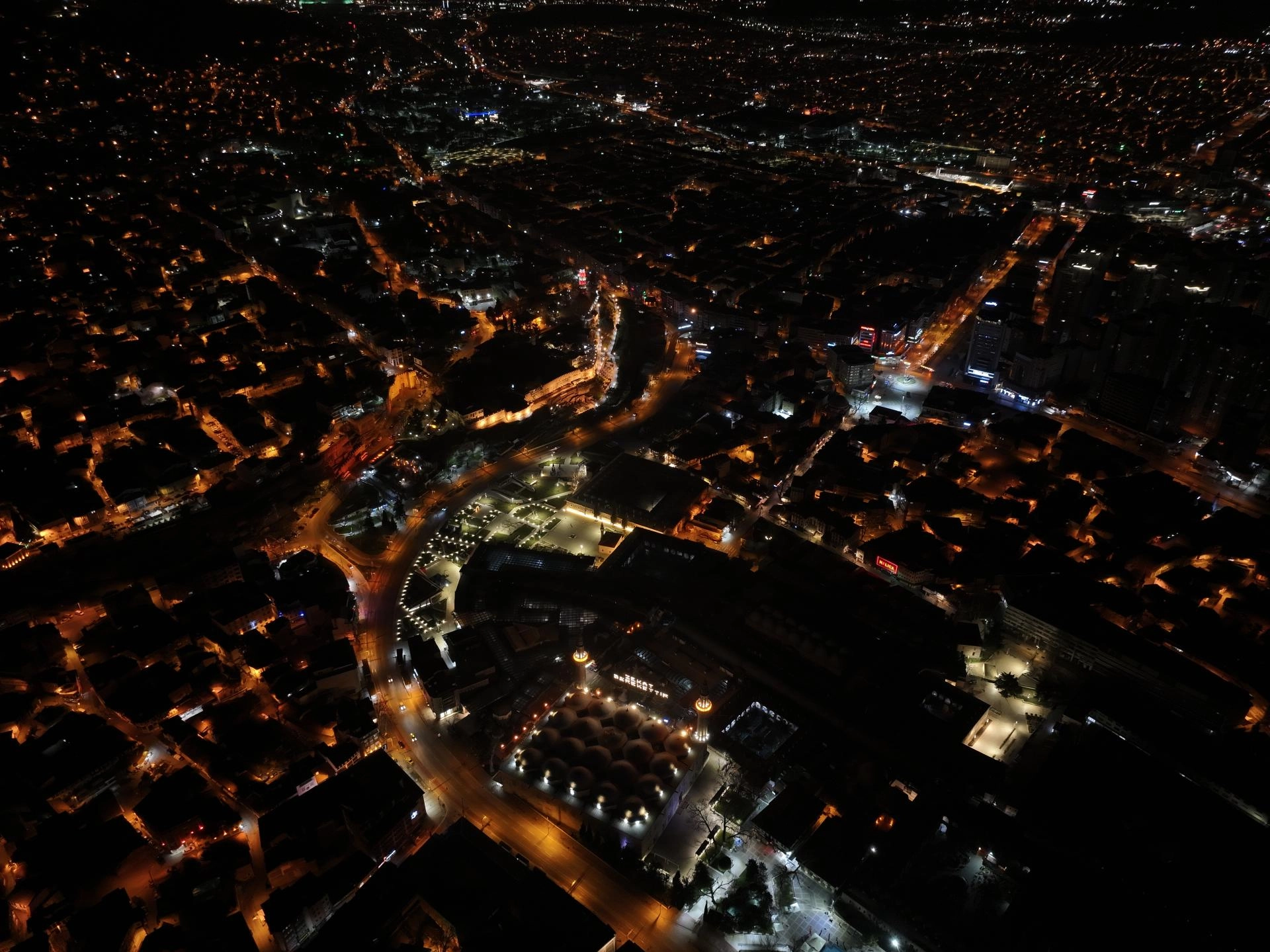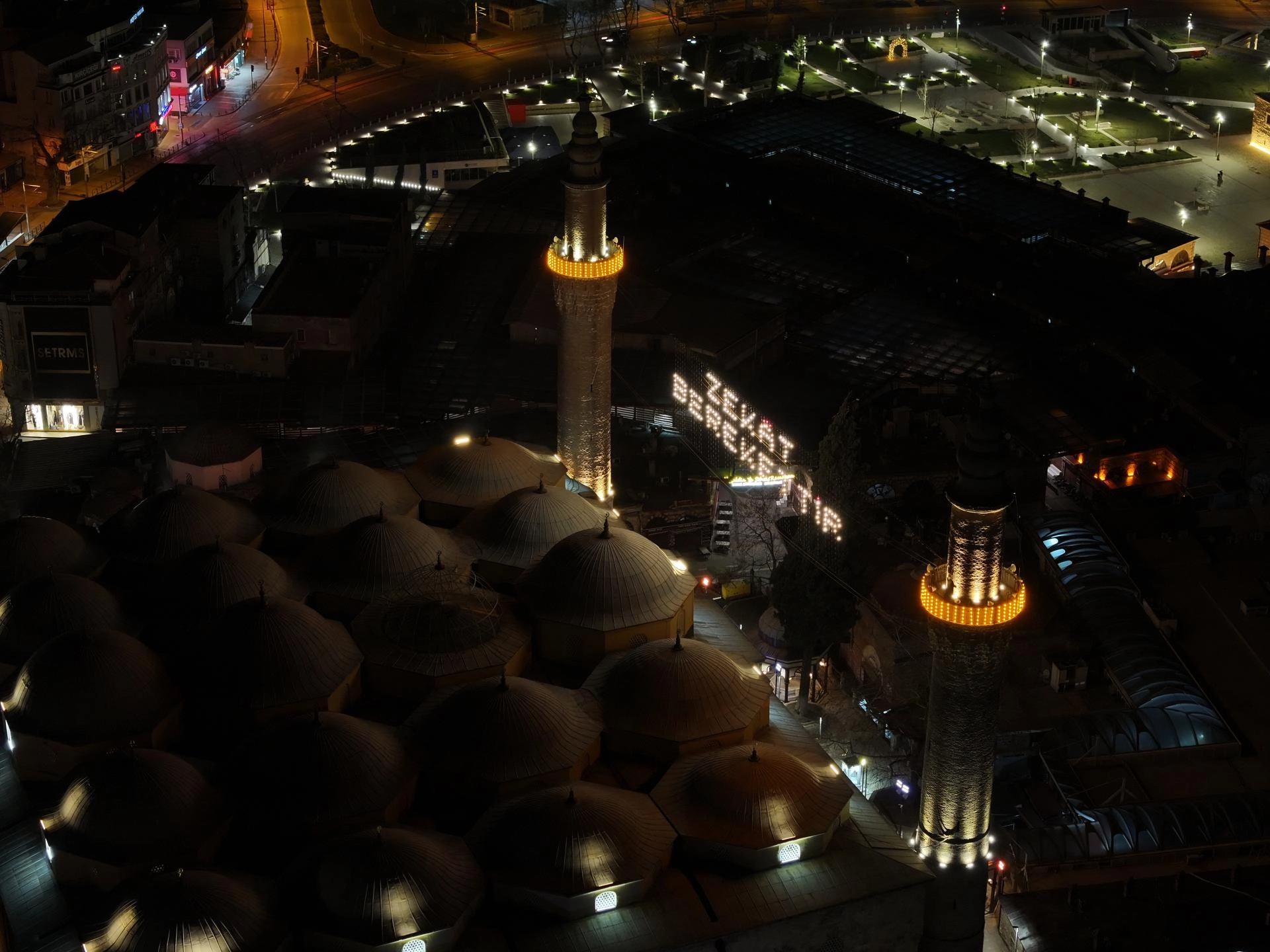 Tarihi Ulu Cami'ye Kültür ve Turizm Bakanlığı Bursa Vakıflar Bölge Müdürlüğü koordinasyonunda Osmanlı'nın son mahyacısı Hacı Ali Ceyhan'ın çırağı Kahraman Yıldız'ın başında olduğu ekip tarafından hazırlanan mahya asılıyor.