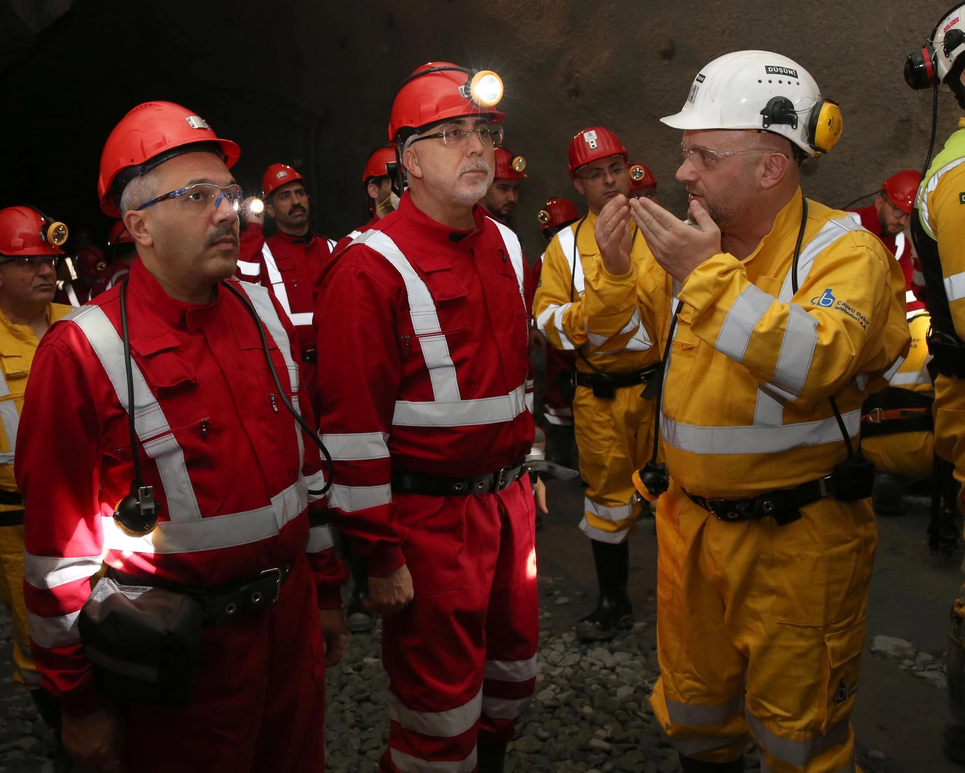 Rize'nin Çayeli ilçesindeki bakır madeni ocağına gelen Işıkhan, burada şirket yetkililerinden işletme hakkında bilgi aldı.