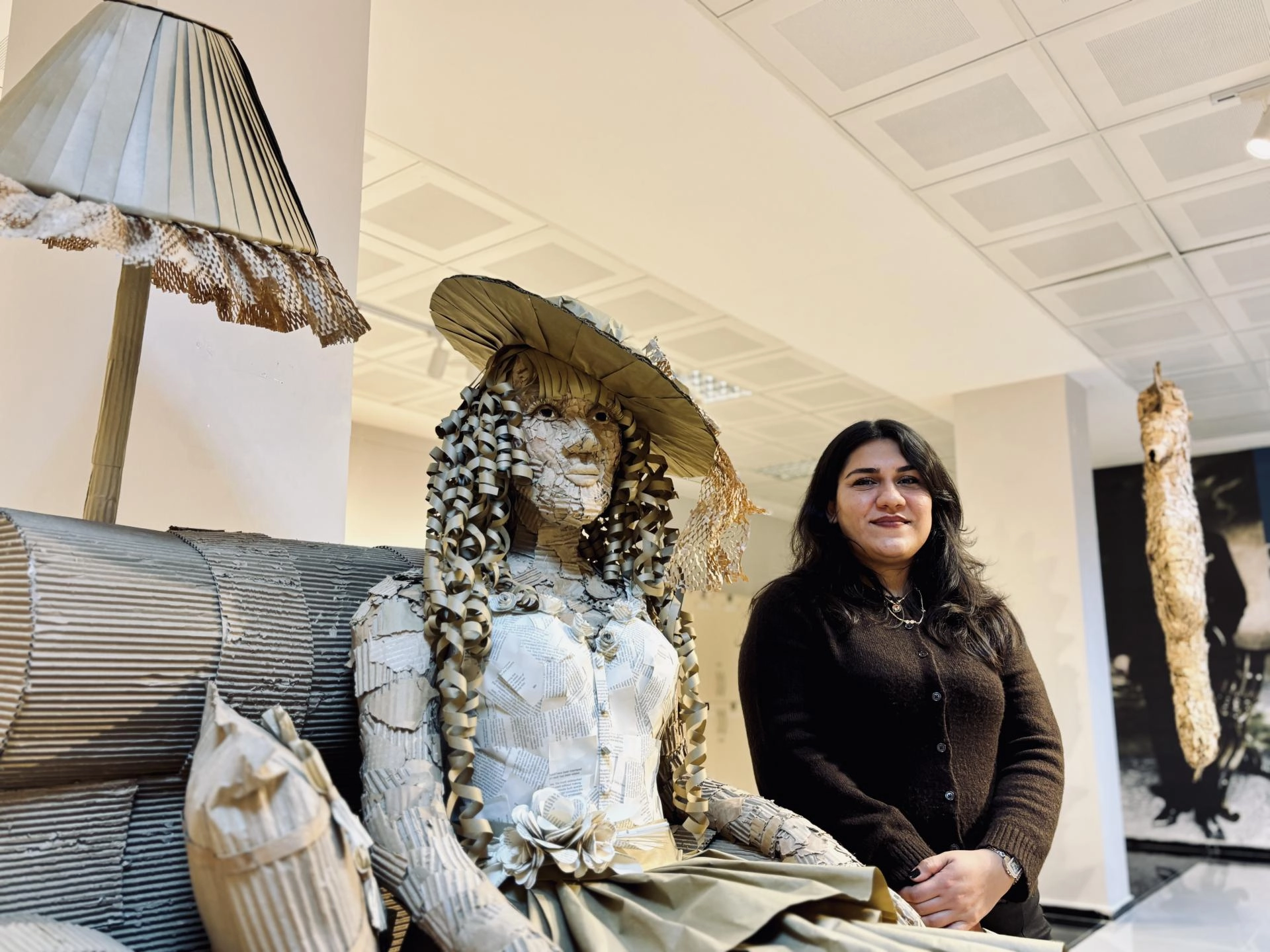 Sanat, Tasarım ve Mimarlık Fakültesi Resim Bölümü 4. sınıf öğrencisi Esra Nur İptaş da atıkları sanata uyarlayarak eserler ortaya çıkardıklarını belirterek, "Su içtiğimiz pet şişe, kullanmadığımız naylon ve kağıt poşetler, tuvalet kağıdı ruloları, bunlar çöpe atılan nesneler. Bunları değerlendirerek, heykellerin iç doldurma alanını oluşturduk. Boş koliler, atılmış kağıtlar, dergiler, kullanılmayan kitaplar heykellerin içinde ve dışında kullanıldı." diye konuştu.