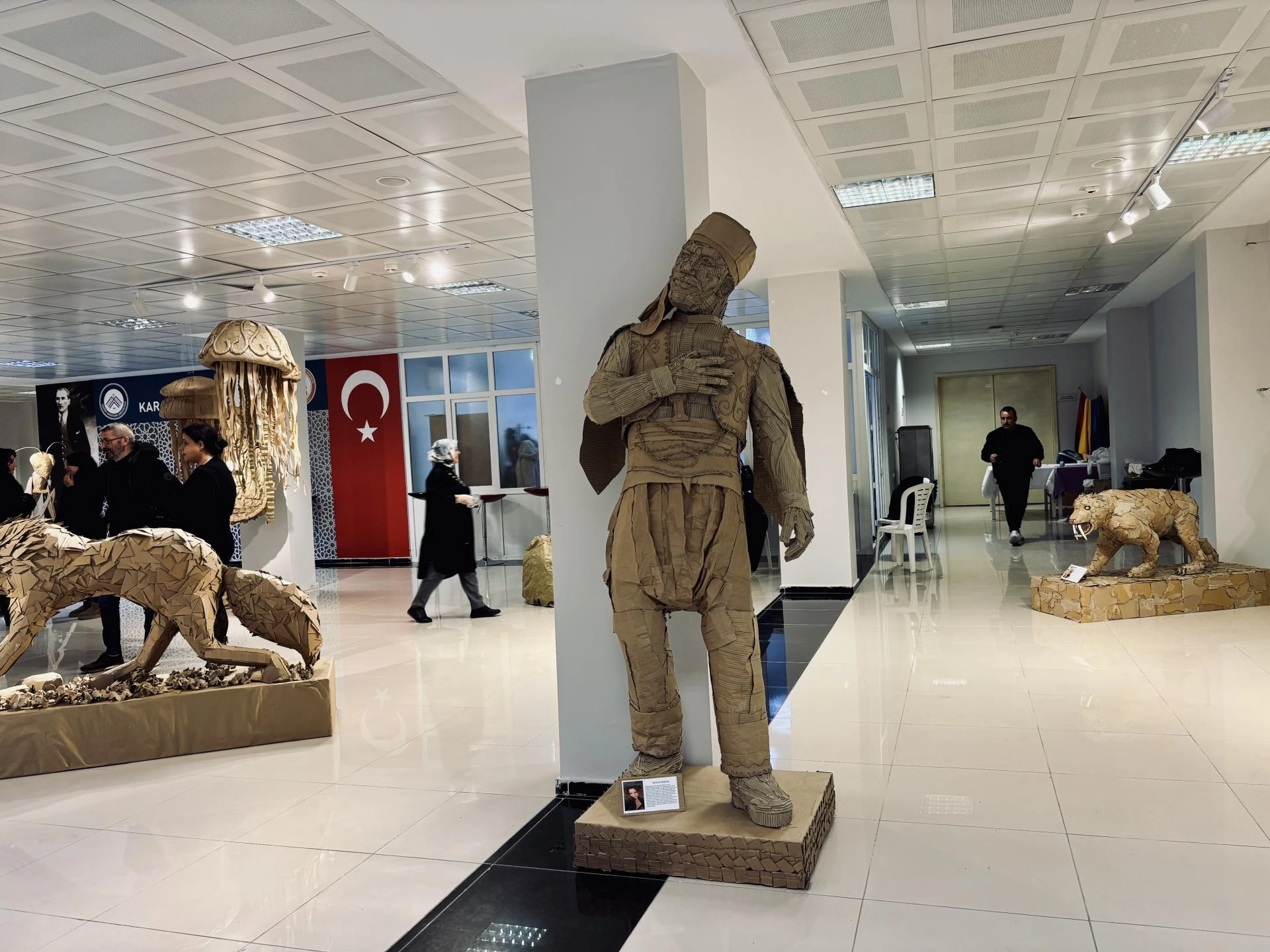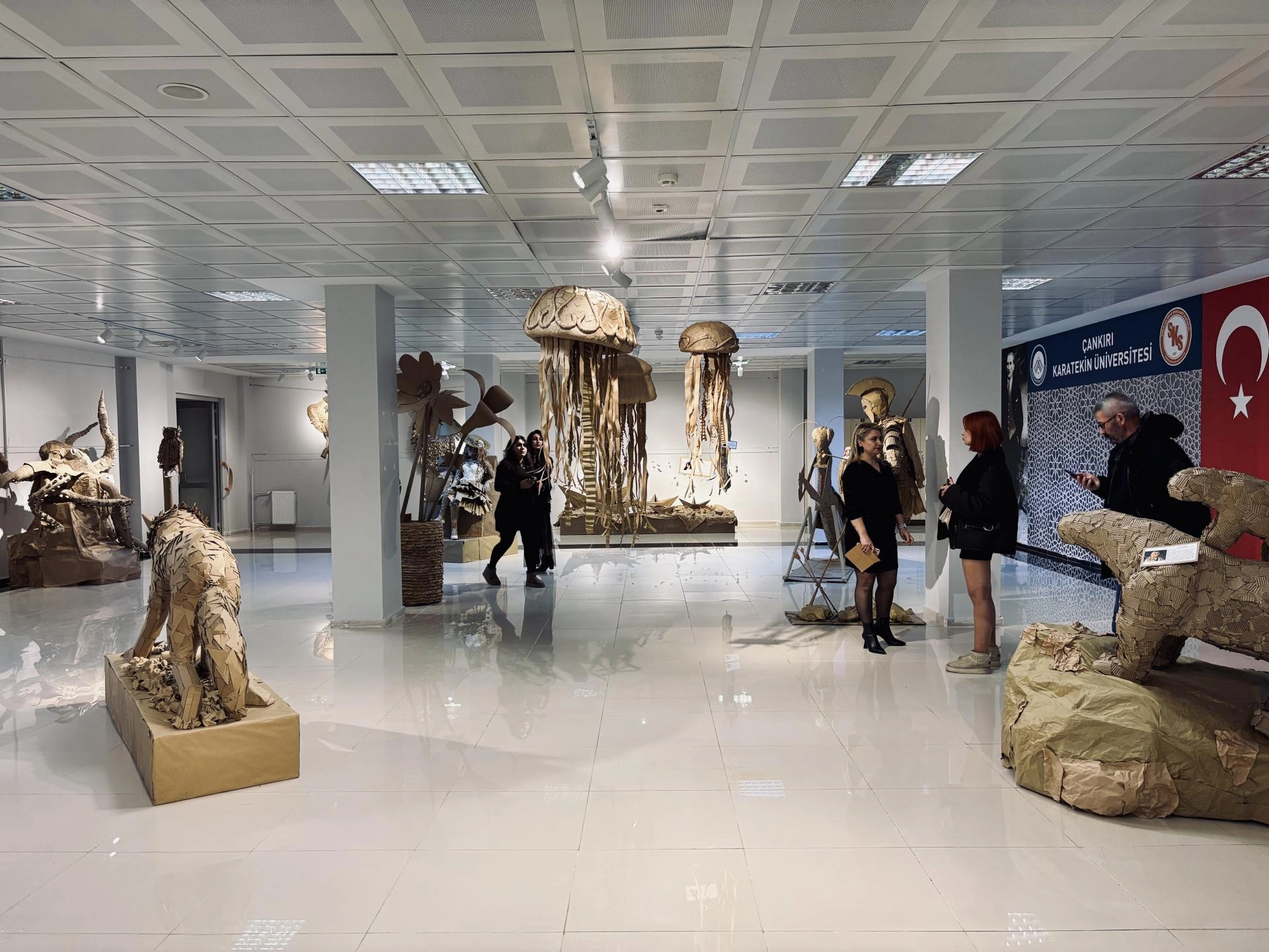 ÇANKIRI (AA) - Çankırı Karatekin Üniversitesi (ÇAKÜ) Sanat, Tasarım ve Mimarlık Fakültesi Resim Bölümü öğrencileri tarafından hazırlanan "Geri Dönüşüm Heykel Sergisi"nin açılışı gerçekleştirildi.