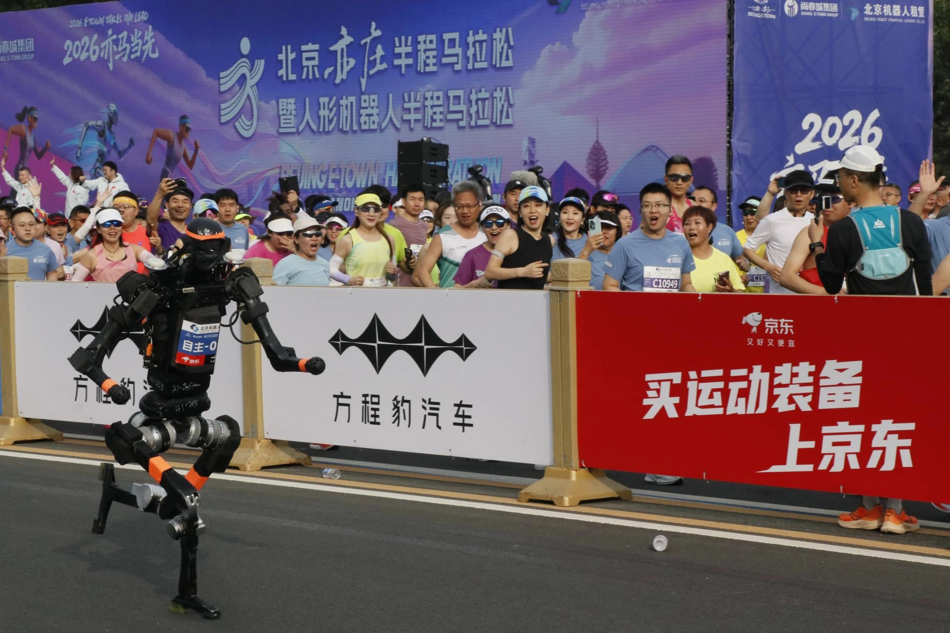 Başkent Pekin'de ikinci kez düzenlenen, insanlar ve insansı robotların aynı parkurda yan yana yarıştığı koşu yarışı, spor ve teknolojinin ilginç buluşmasına tanıklık etti.