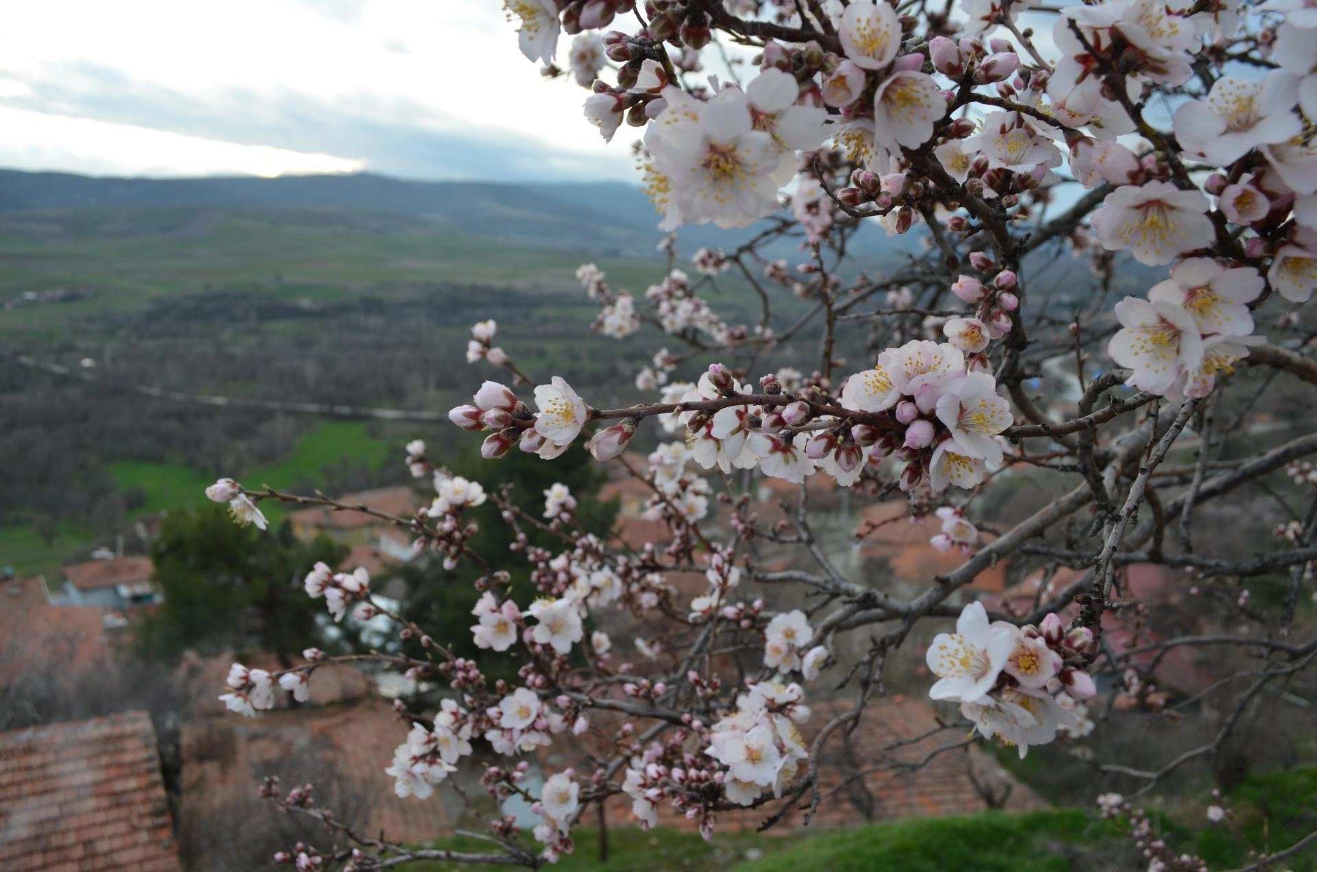 Kentte hava sıcaklıklarının birkaç gündür mevsim normallerinin üzerinde seyretmesiyle bazı badem ağaçları erken çiçek açtı.