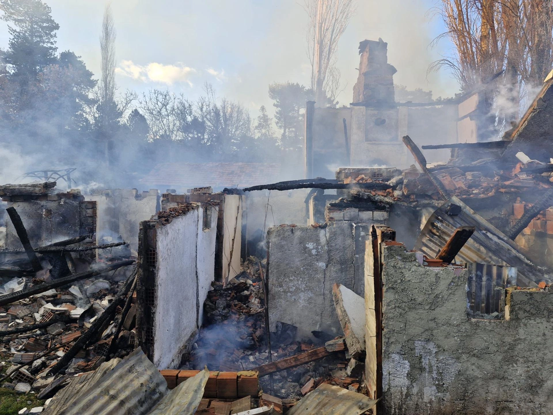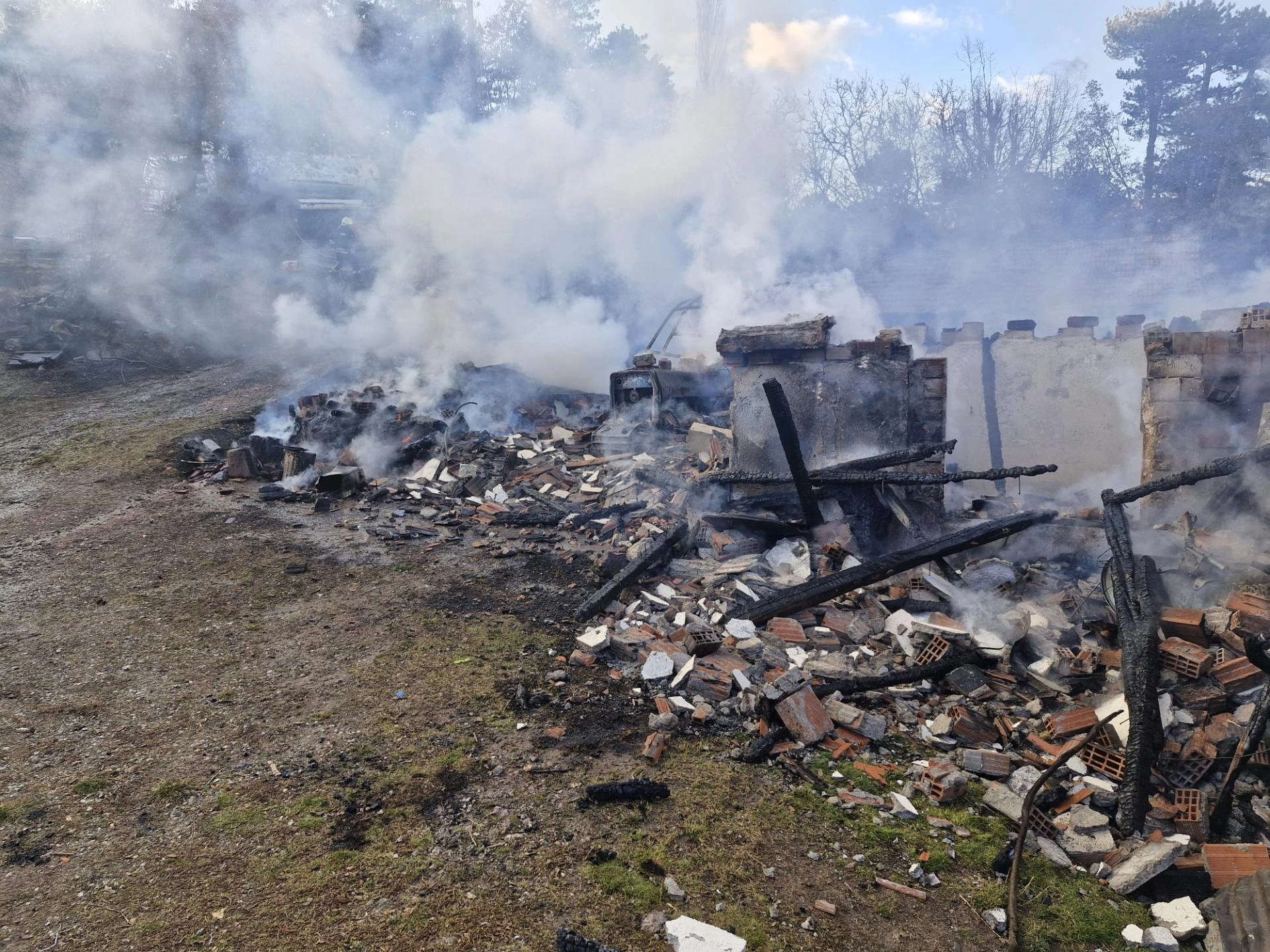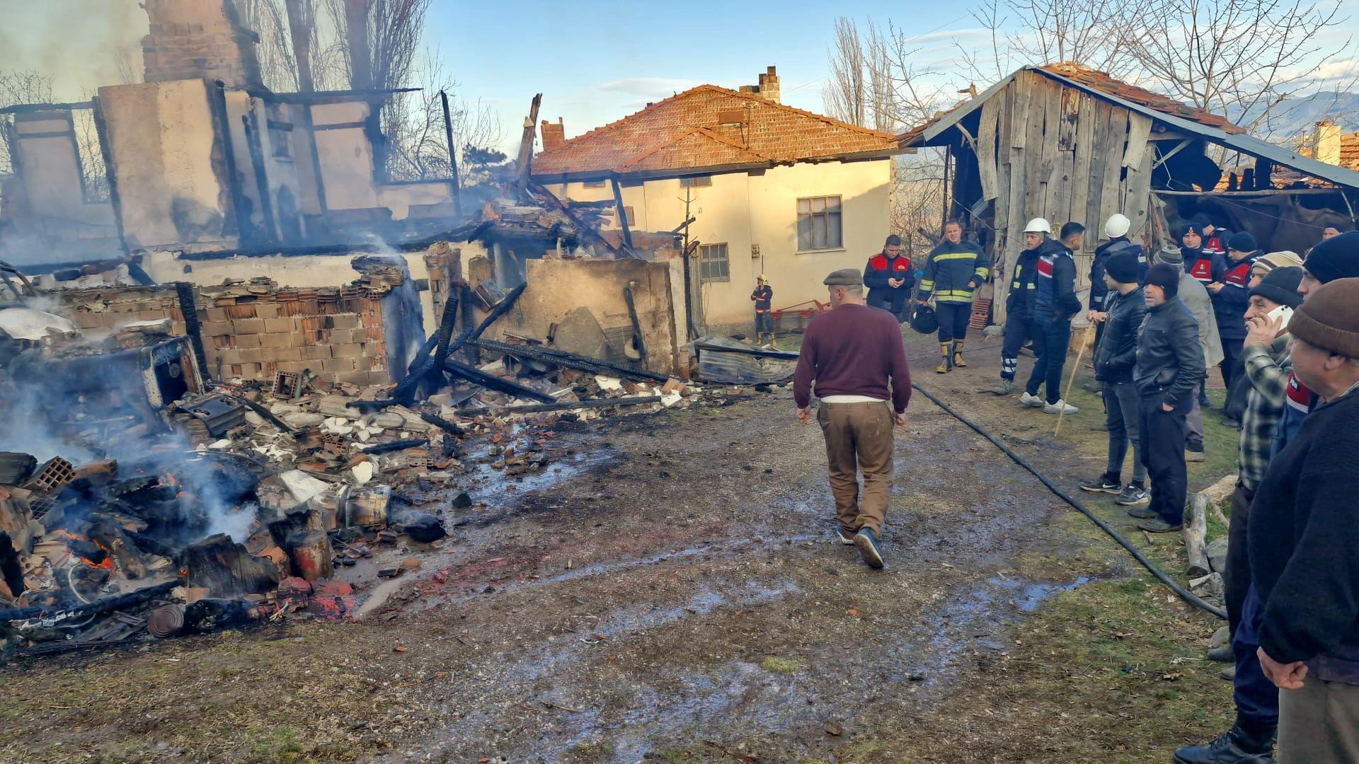 İskilip Belediyesi itfaiye ekiplerince söndürülen yangında 2 katlı ev, bitişiğindeki samanlık ve park halindeki traktör kullanılamaz hale geldi.