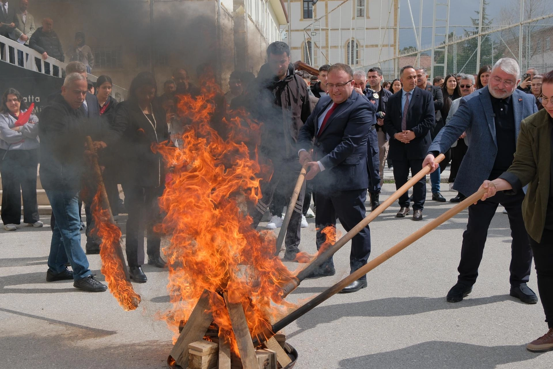 Protokol üyeleri ayrıca, nevruz ateşinin üzerinden atladı, demir dövdü.