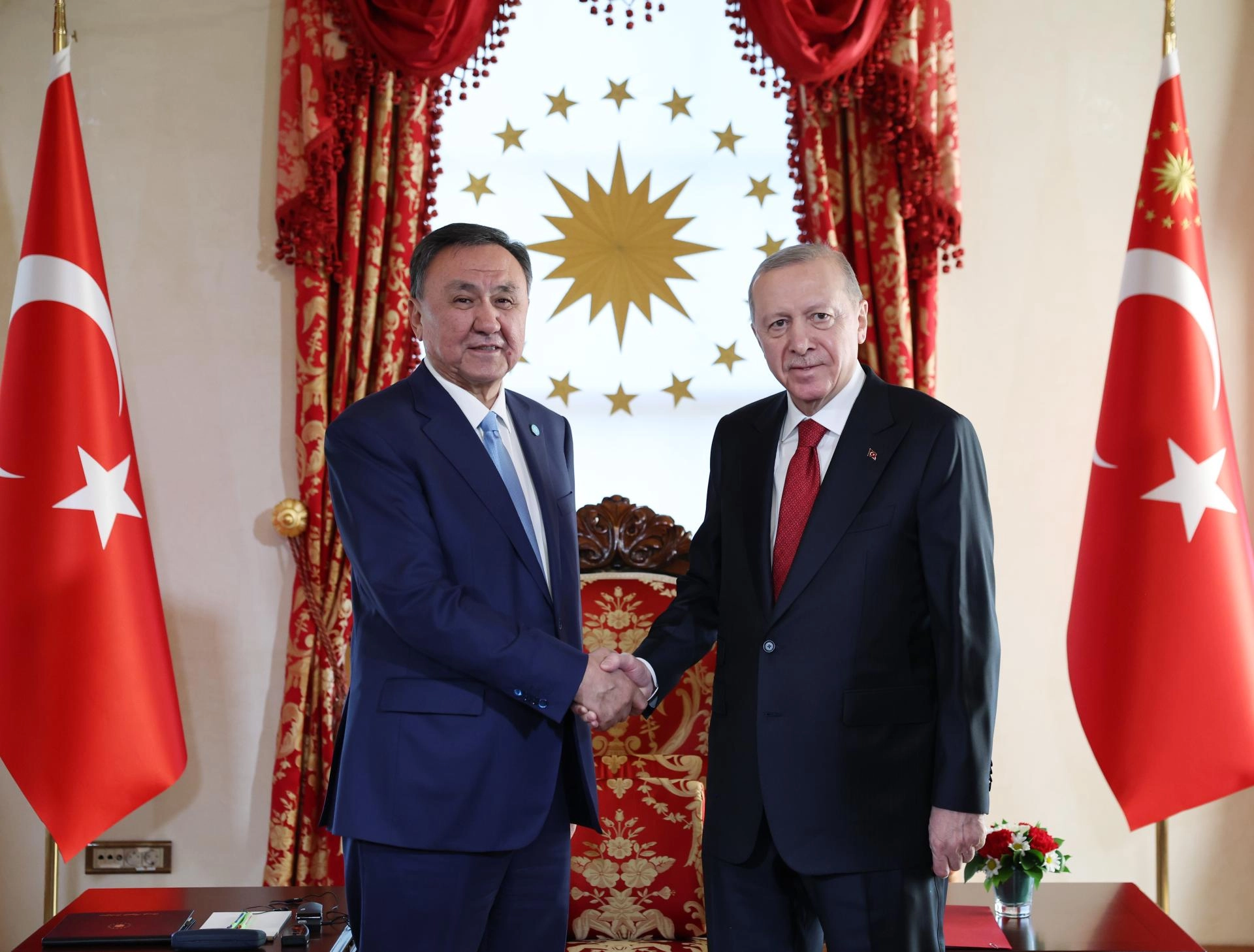 İSTANBUL (AA) - Cumhurbaşkanı Recep Tayyip Erdoğan, Türk Devletleri Teşkilatı (TDT) Gayriresmi Toplantısı kapsamında İstanbul'da bulunan TDT Genel Sekreteri Kubanıçbek Ömüraliyev ile üye ülkelerin dışişleri bakanlarını kabul etti.