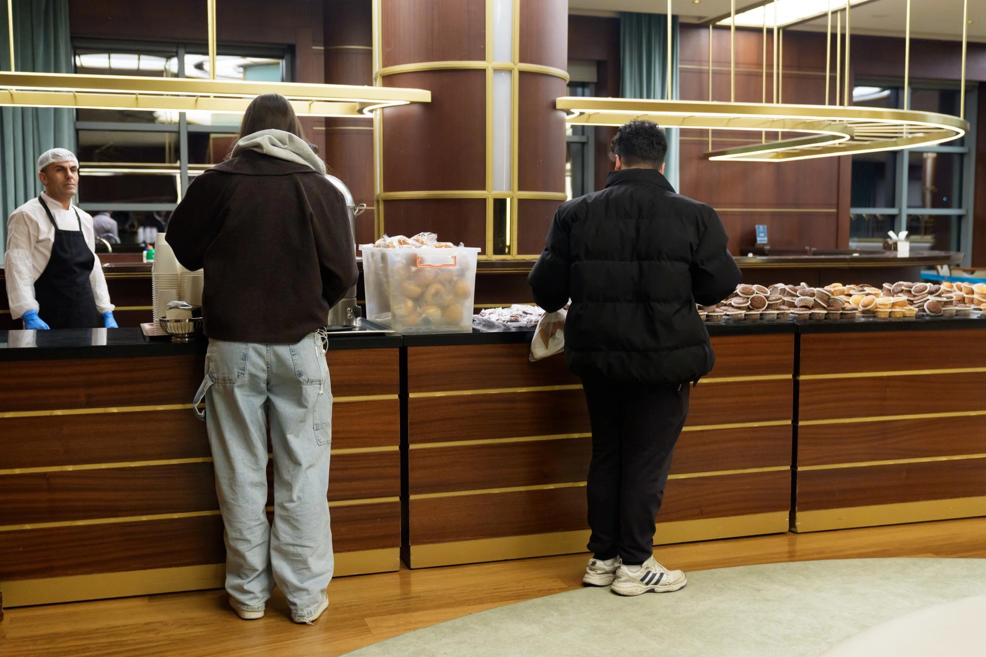 Kütüphane çalışanları, ramazan dolayısıyla ziyaretçilere sahur vaktinde ücretsiz çay, kahve, su ve kek ikramında bulunuyor.