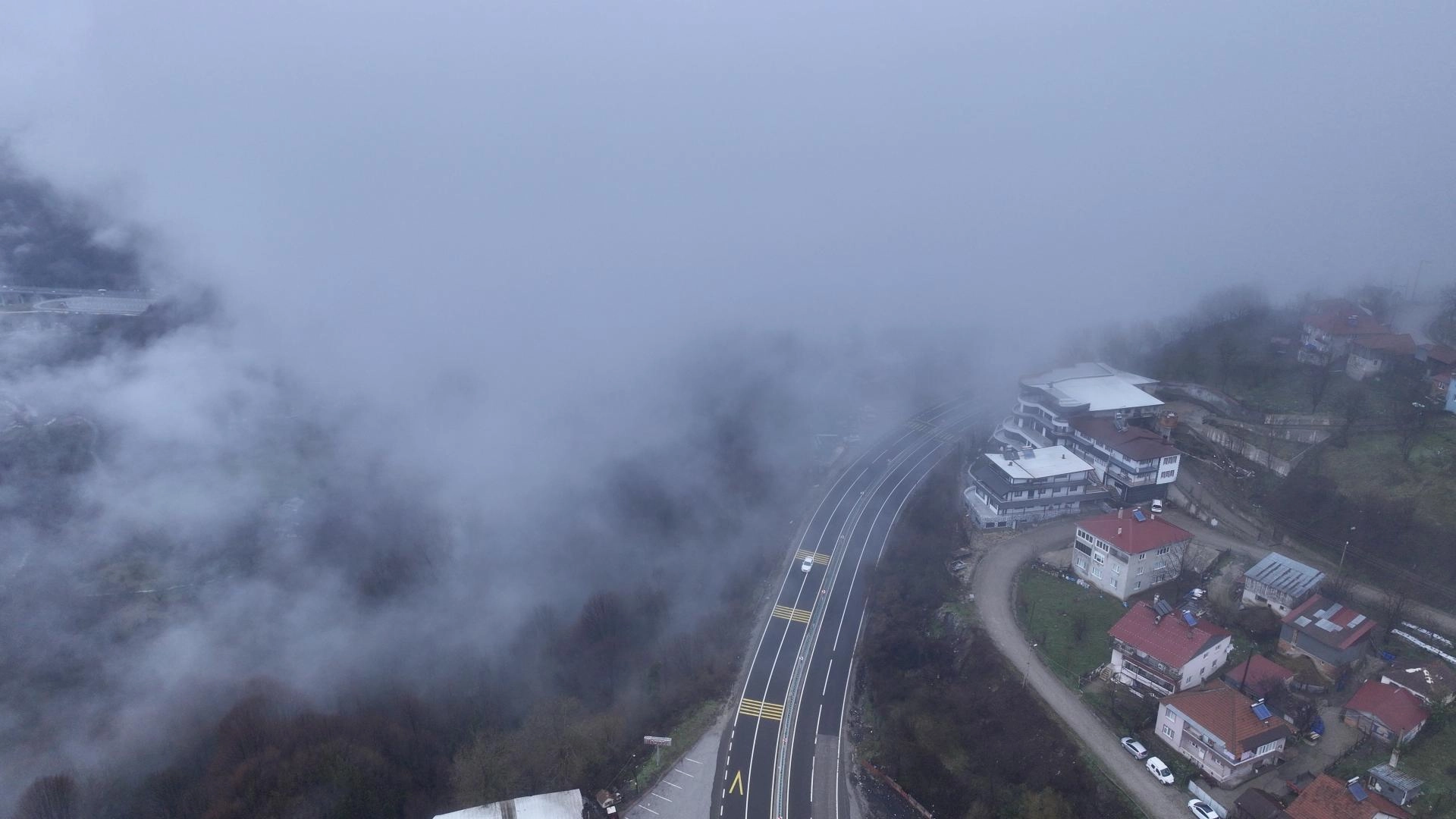 Bölgede etkili olan sis havadan görüntülendi.
