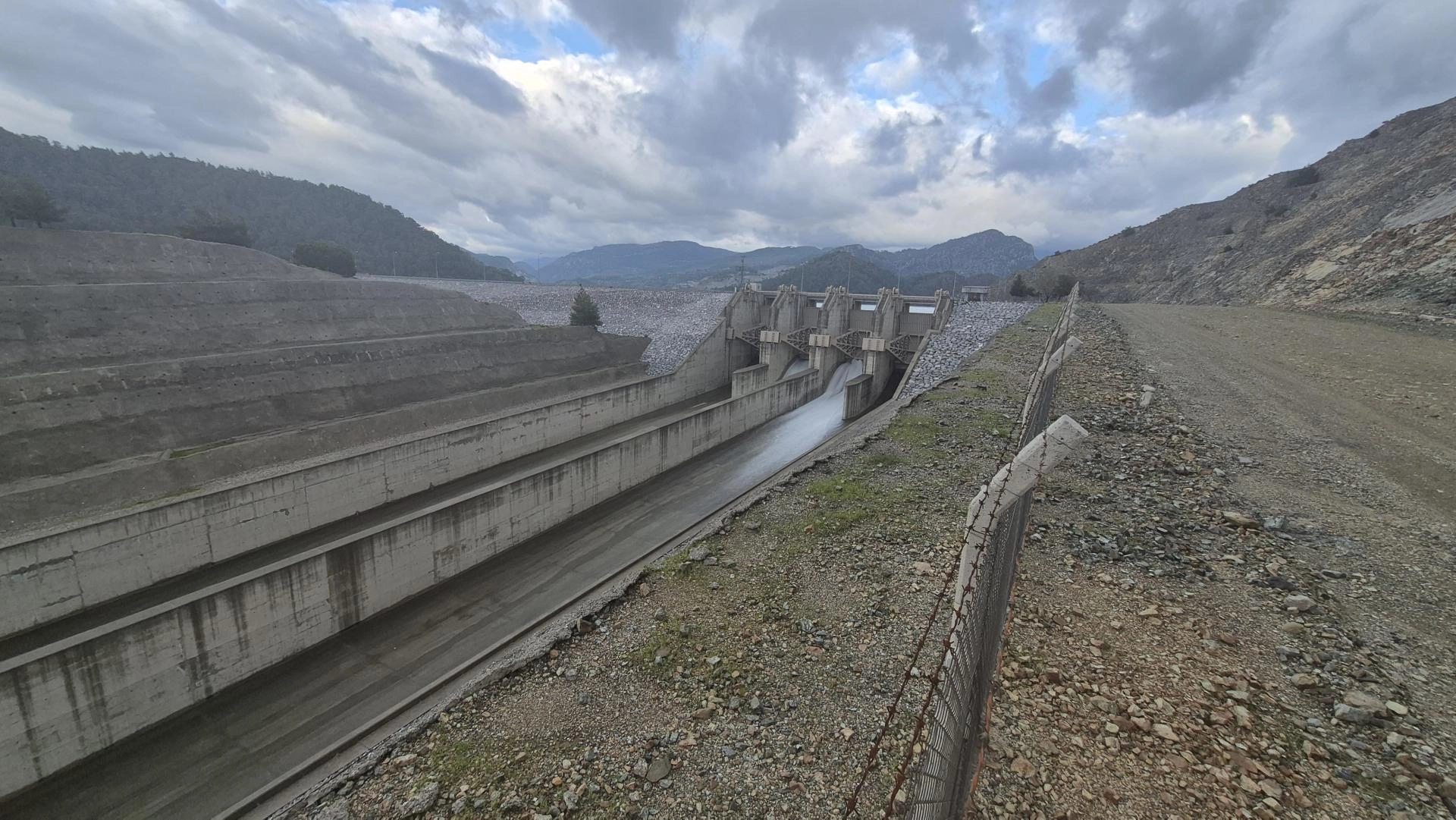Son günlerde yaşanan yağışlardan sonra su seviyesi yükselen Dalaman Akköprü Barajı'ndan kontrollü olarak dere yatağına su tahliyesi yapılıyor.