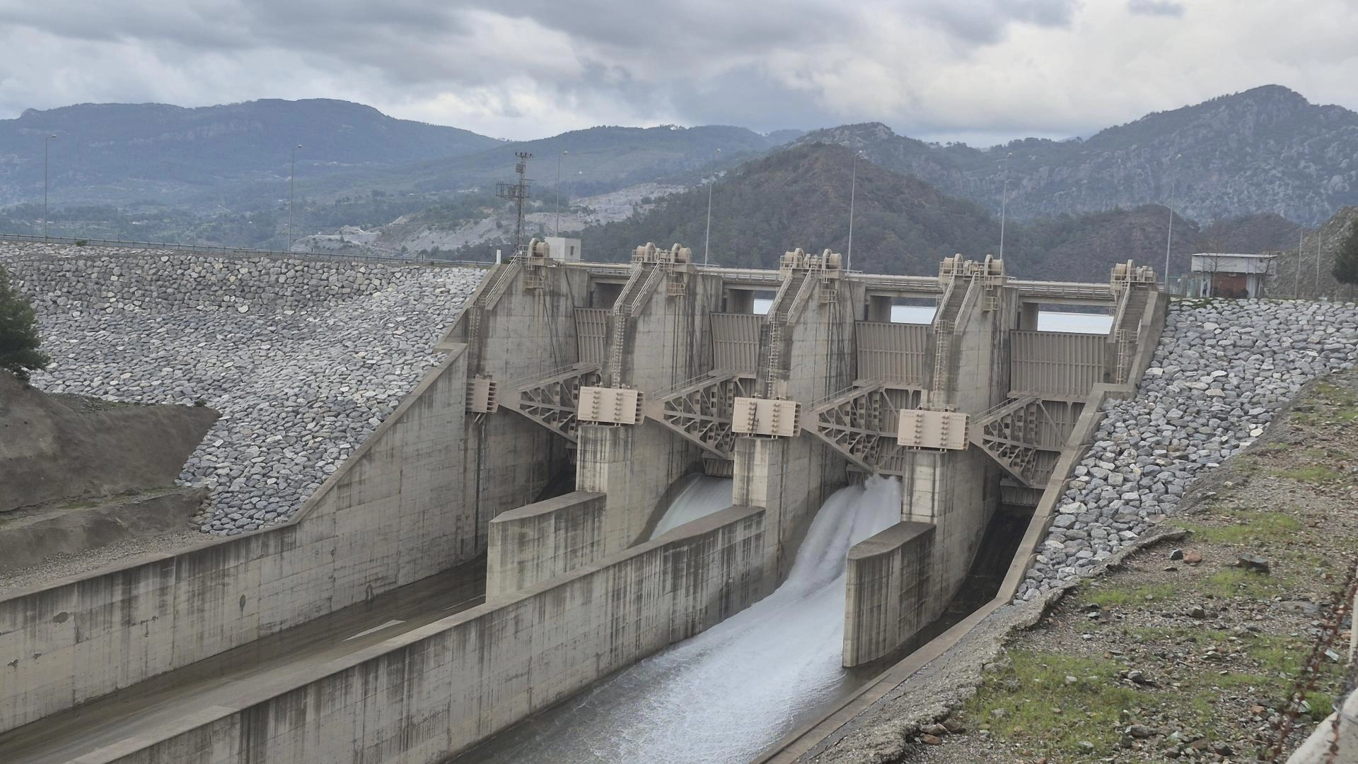 MUĞLA (AA) - Muğla'nın Dalaman ilçesindeki Türkiye'nin en büyük barajları arasında yer alan Dalaman Akköprü Barajı'ndan kontrollü su tahliyesi gerçekleştiriliyor.