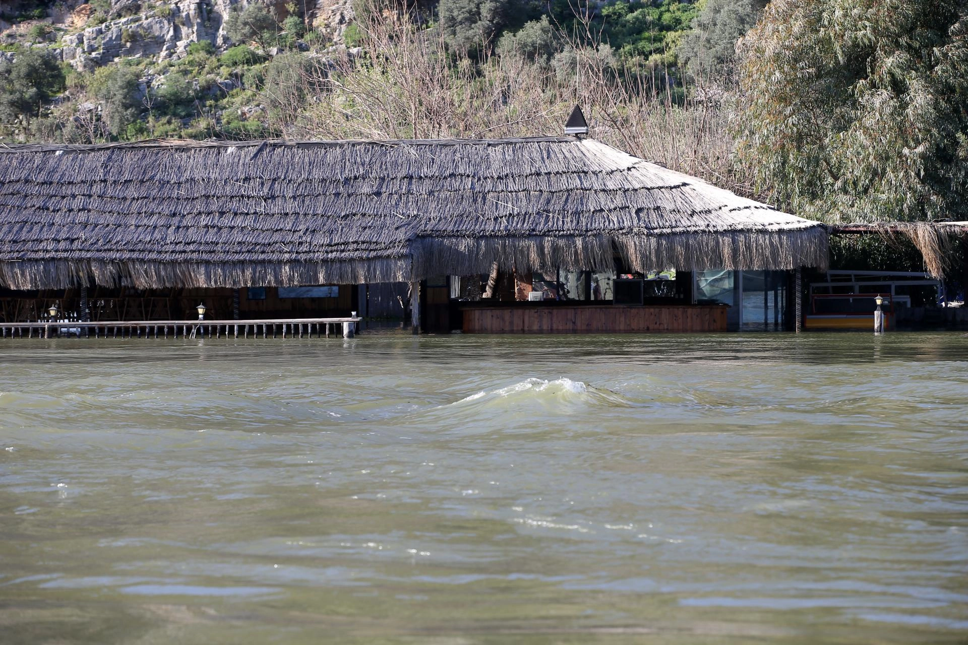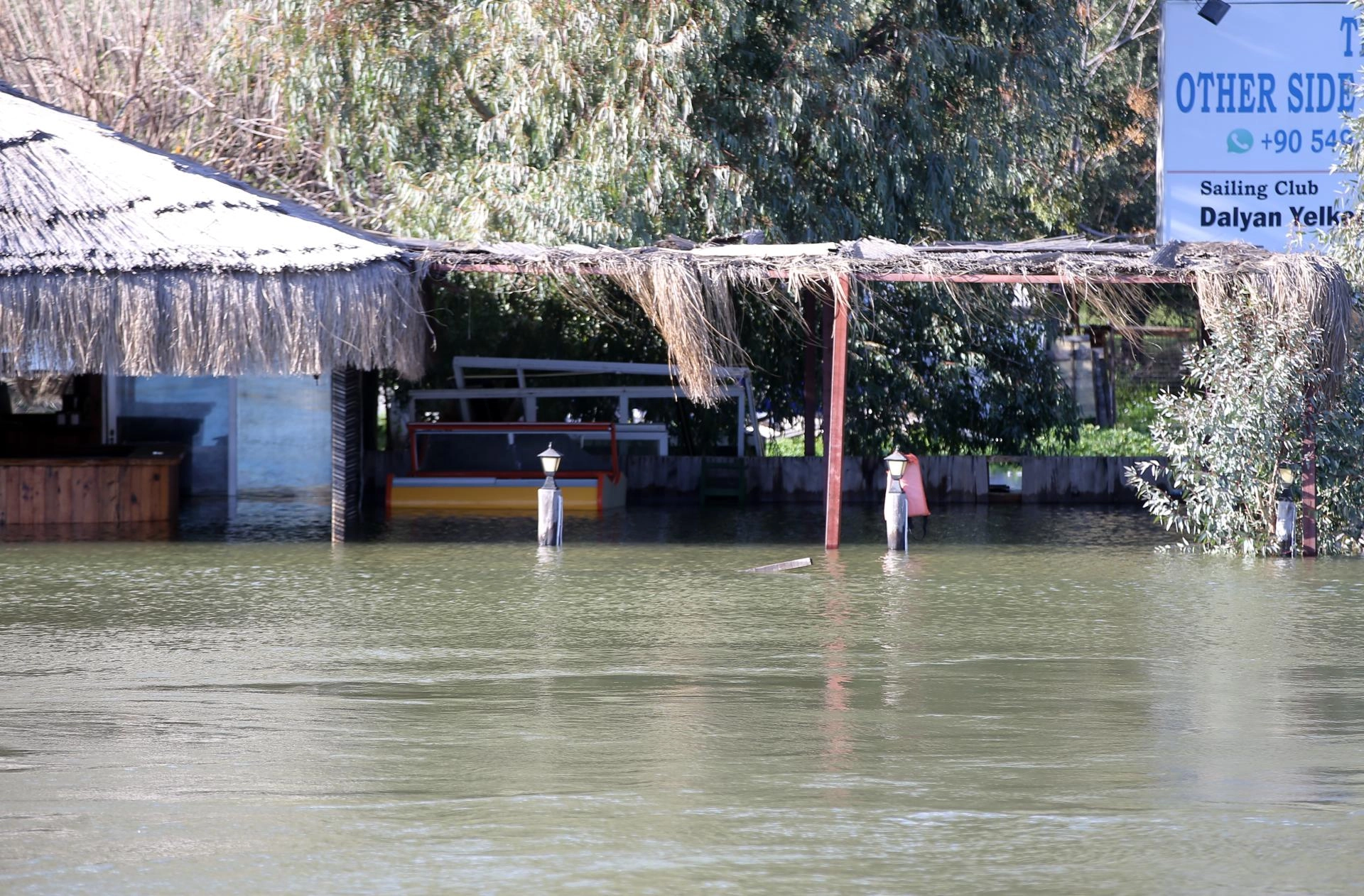 MUĞLA (AA) - Muğla'nın Ortaca ilçesinde, 5 gündür etkili olan yağış nedeniyle Dalyan Kanalı'nda su seviyesi yaklaşık 1,5 metre yükselirken, bazı restoranlar su altında kaldı.
