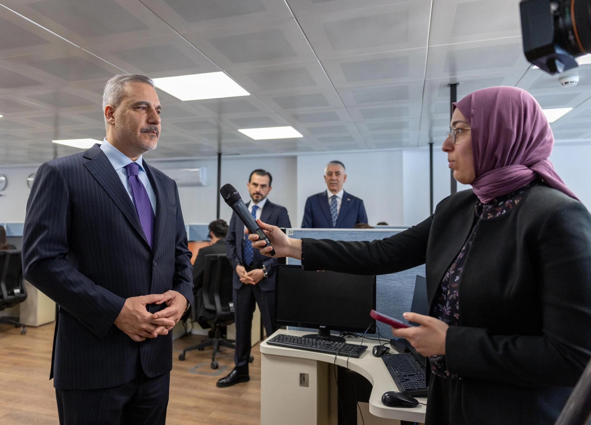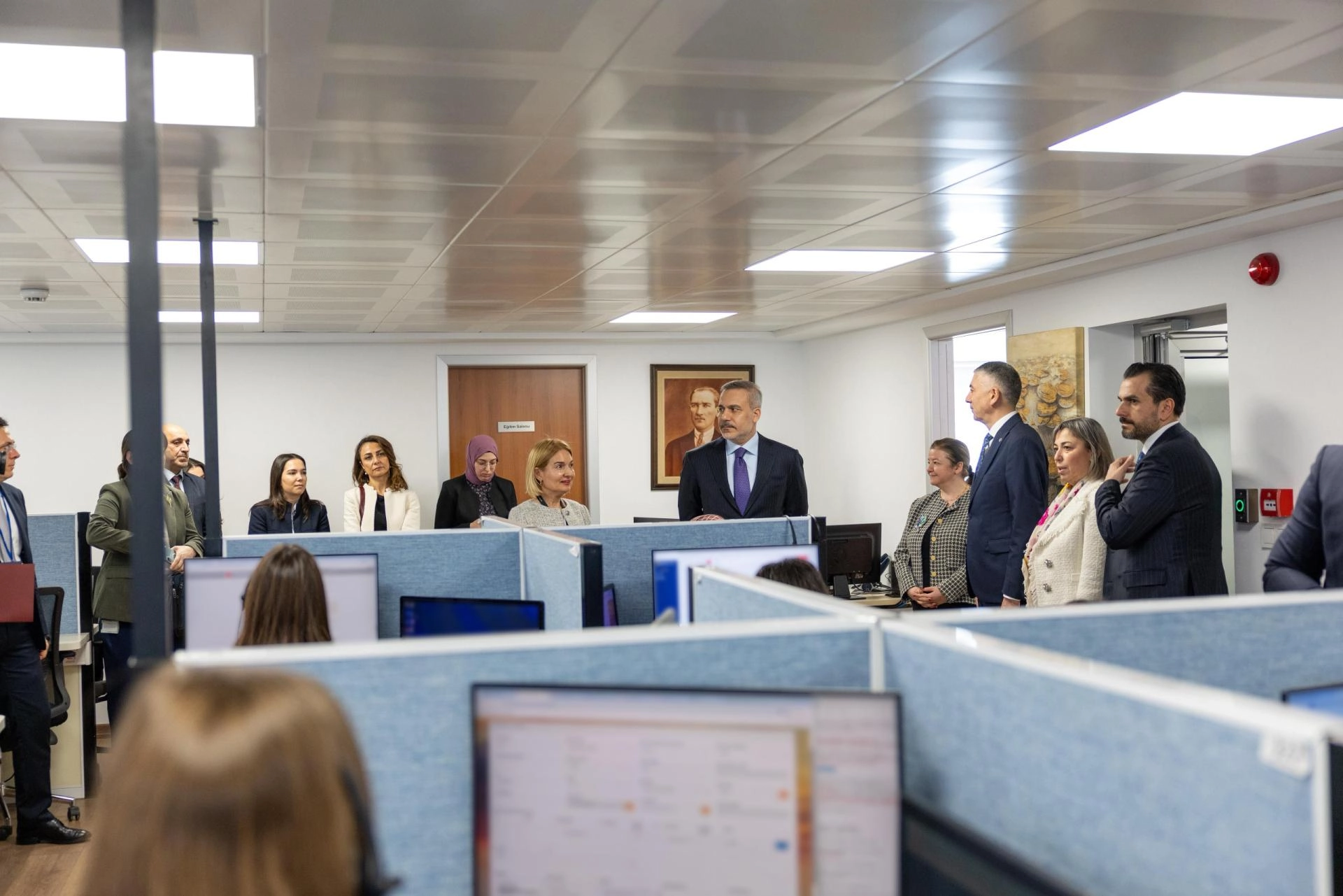 Bakan Fidan, Ankara'nın Kızılay semtinde yer alan Konsolosluk Çağrı Merkezi'ne yaptığı ziyarette, incelemelerde bulundu ve faaliyetlere ilişkin bilgi aldı.