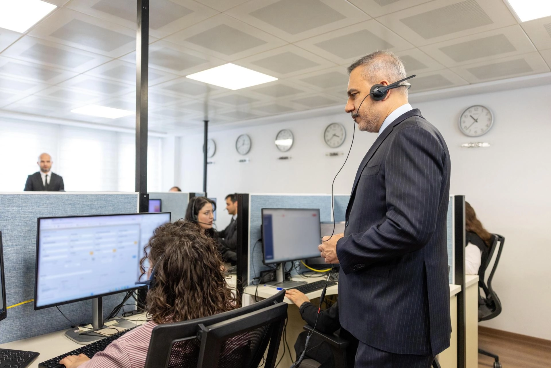 Fidan, "Şu anda Konsolosluk Çağrı Merkezi'nde bulunmaktayız. Burada 7/24 arkadaşlarımız faaliyet göstermekte. Dünyanın dört bir tarafında bulunan vatandaşlarımızın taleplerine, sorularına cevap verilmekte. Özellikle hem alandaki misyonlardaki arkadaşlarımız hem de merkezdeki arkadaşlarımız bir yazılım marifetiyle bu çağrıları yönetmekte ve cevap vermekte." ifadelerini kullandı.