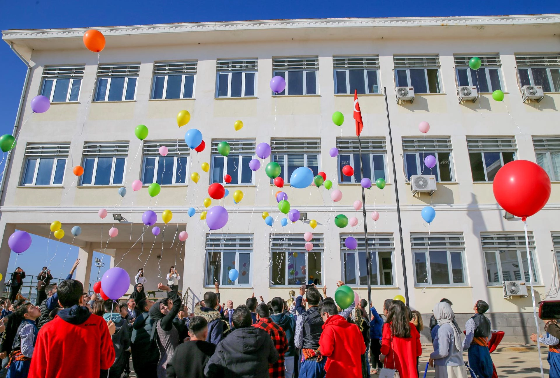 Özel öğrencilerden oluşan koronun müzik dinletisinin ardından öğrenciler, öğretmenleri ve velileriyle gökyüzüne balon bıraktı.