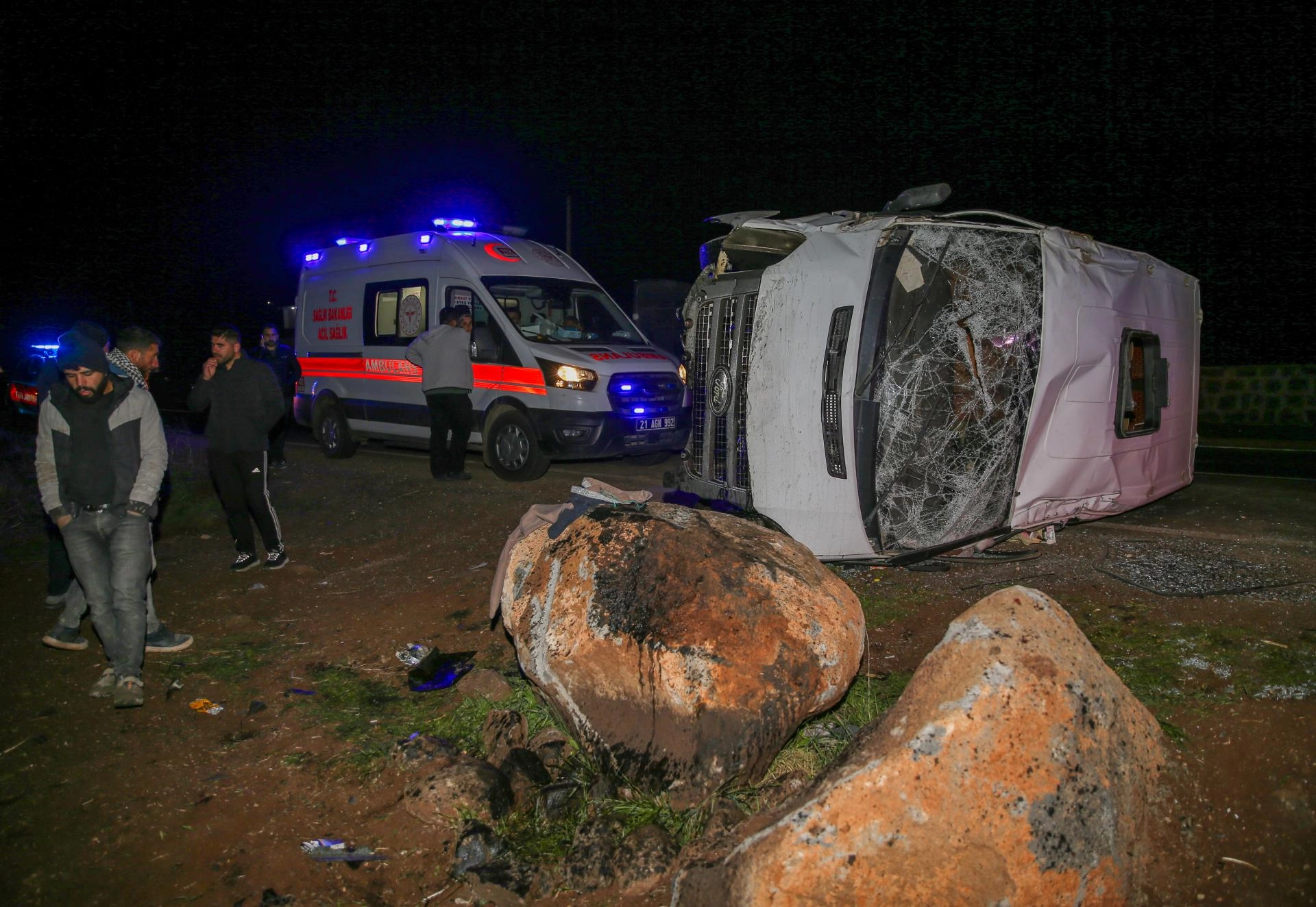Diyarbakır-Şanlıurfa kara yolunun Ardantepe mevkisinde, inşaat işçilerini taşıyan 34 LHL 23 plakalı minibüs devrildi.