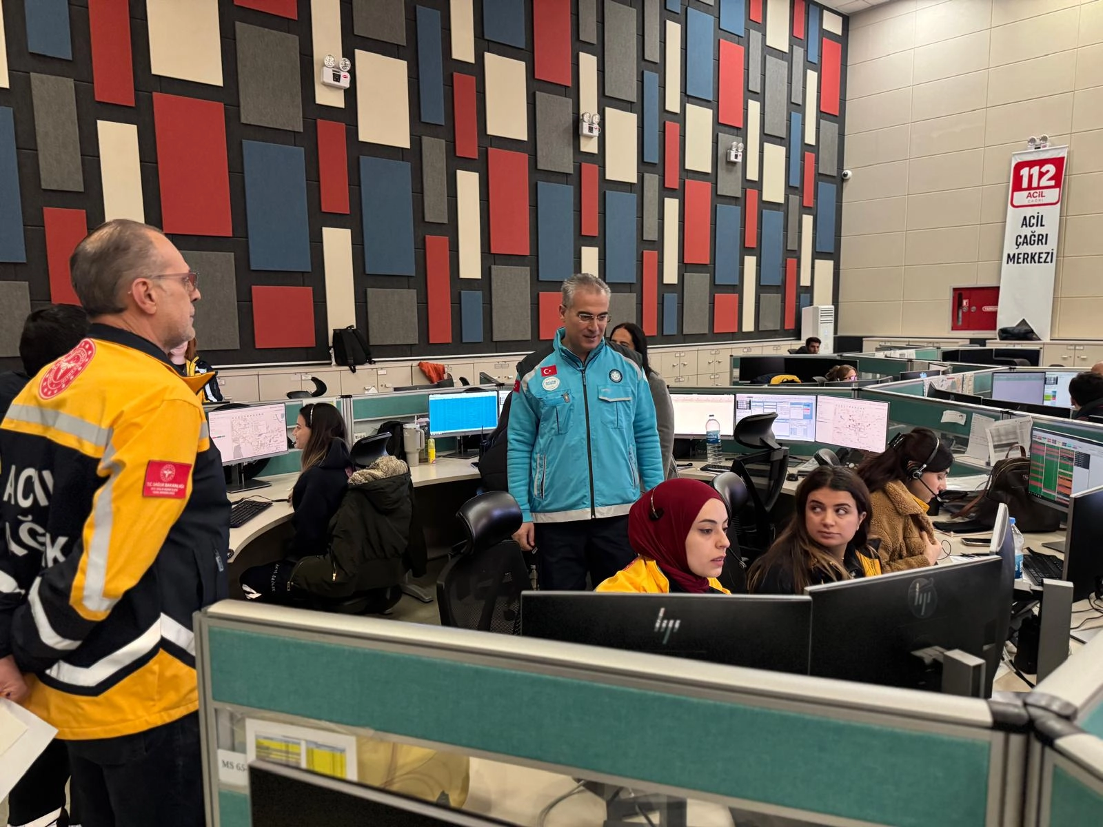 İl Sağlık Müdürü Emre Asiltürk de 112 Acil Çağrı Merkezi'ni ziyaret ederek merkezde görev yapan personelle bir araya geldi.