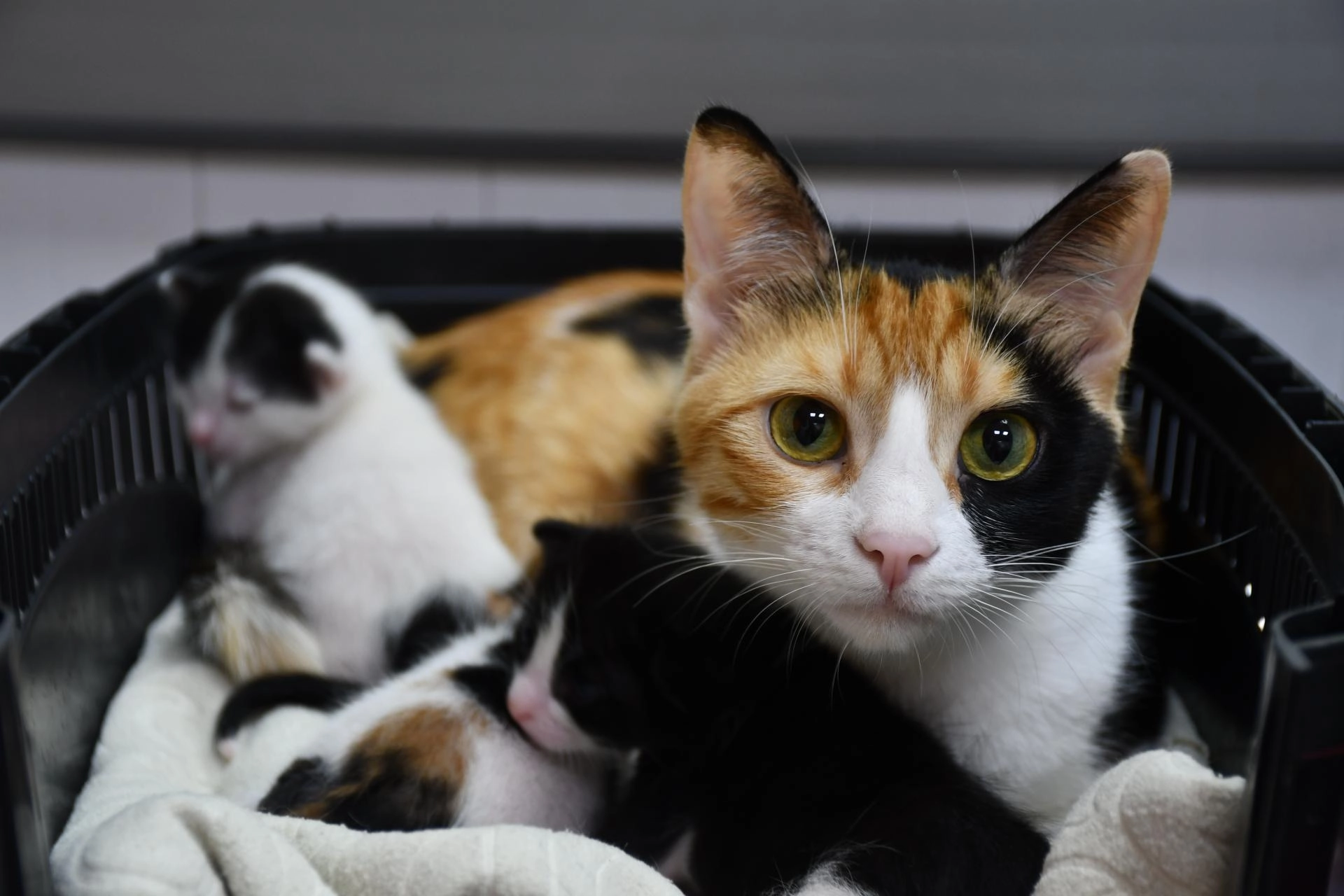 Doğumun ardından bir süre gözetim altında tutulan kedi ve yavruları, taburcu edilip sahibiyle buluşturuldu.