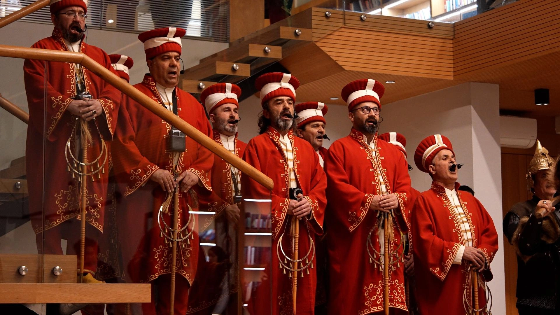Mehter ekibi, bu kapsamda iftar sonrası öğrencilerden önce kütüphane içerisinde konuşlandı.