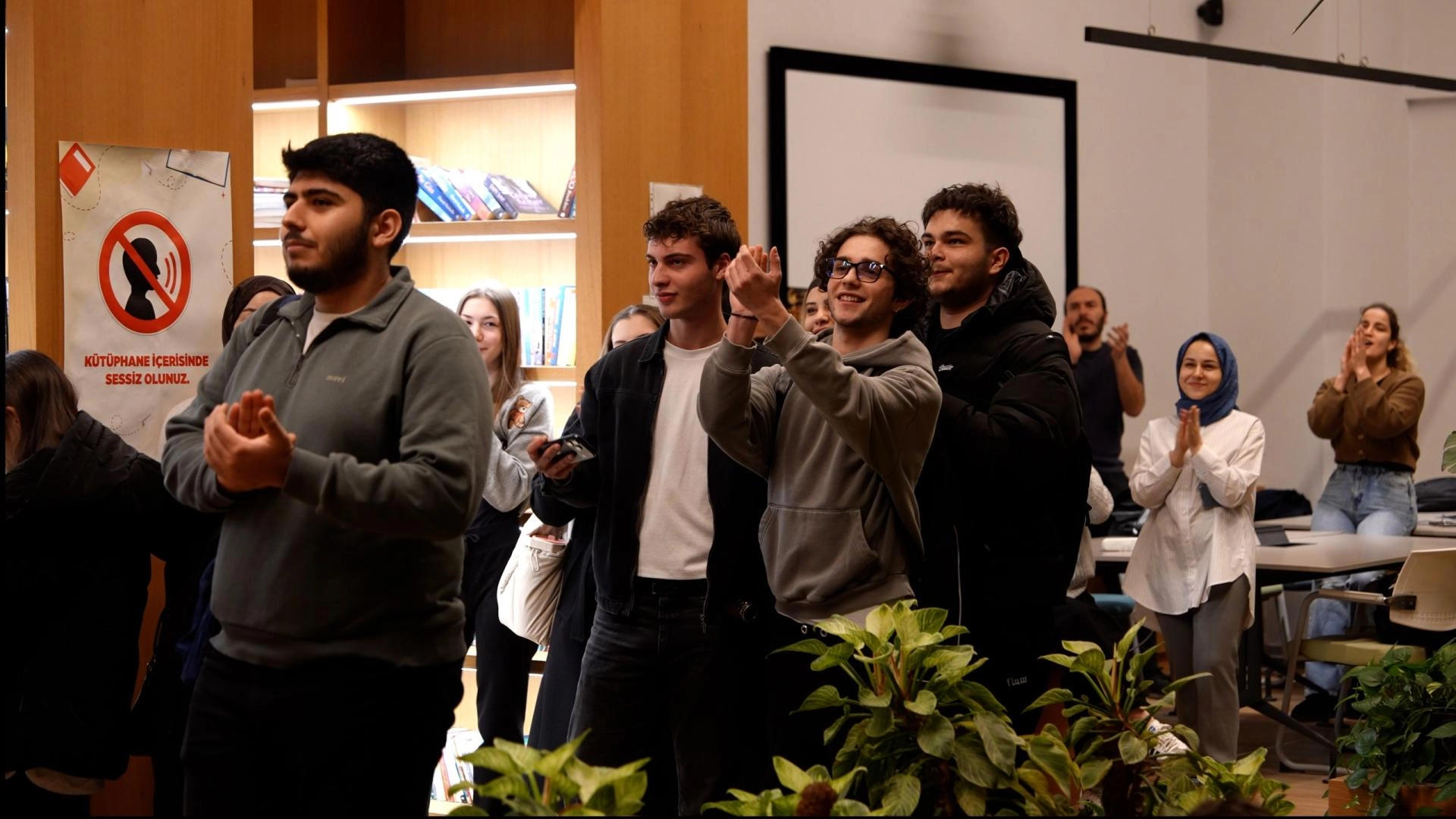 Marşların kütüphane içerisinde yankılanmasıyla öğrenciler büyük şaşkınlık ve heyecan yaşadı.