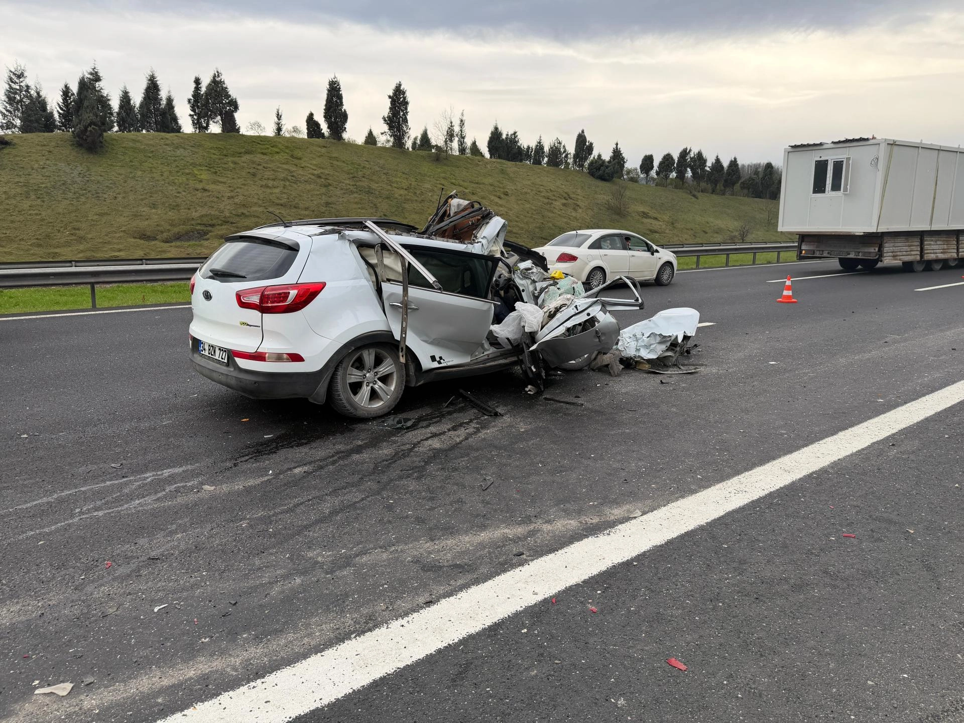 DÜZCE (AA) - Anadolu Otoyolu'nun Düzce kesiminde tıra çarpan SUV tipi araçtaki 1 kişi hayatını kaybetti, 1 kişi yaralandı.