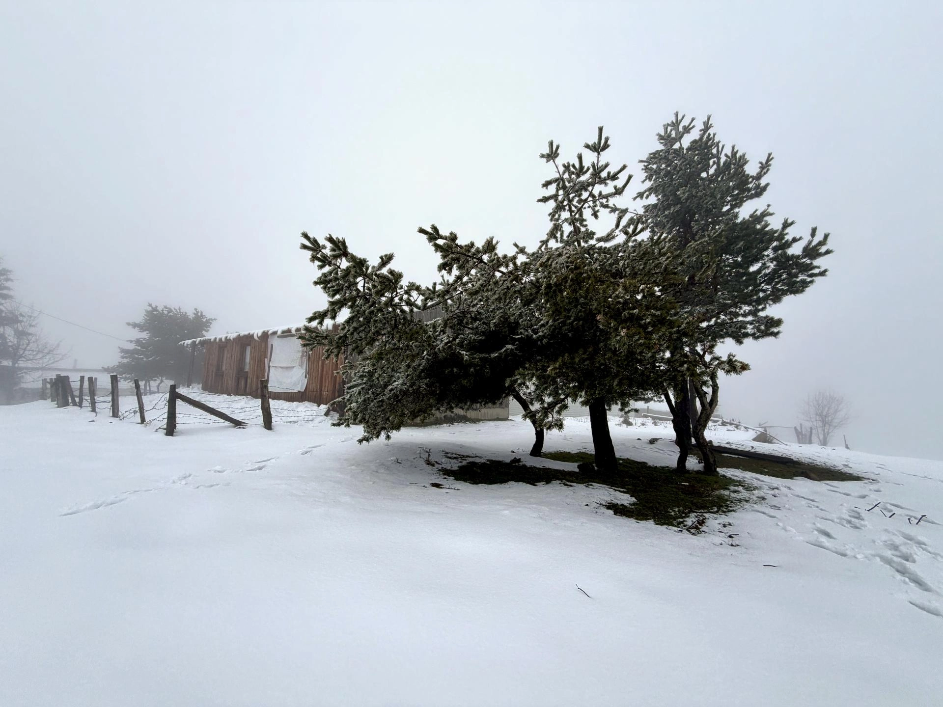Yaylanın yamaçlarında oluşan sis de karla güzel görüntüler oluşturdu.