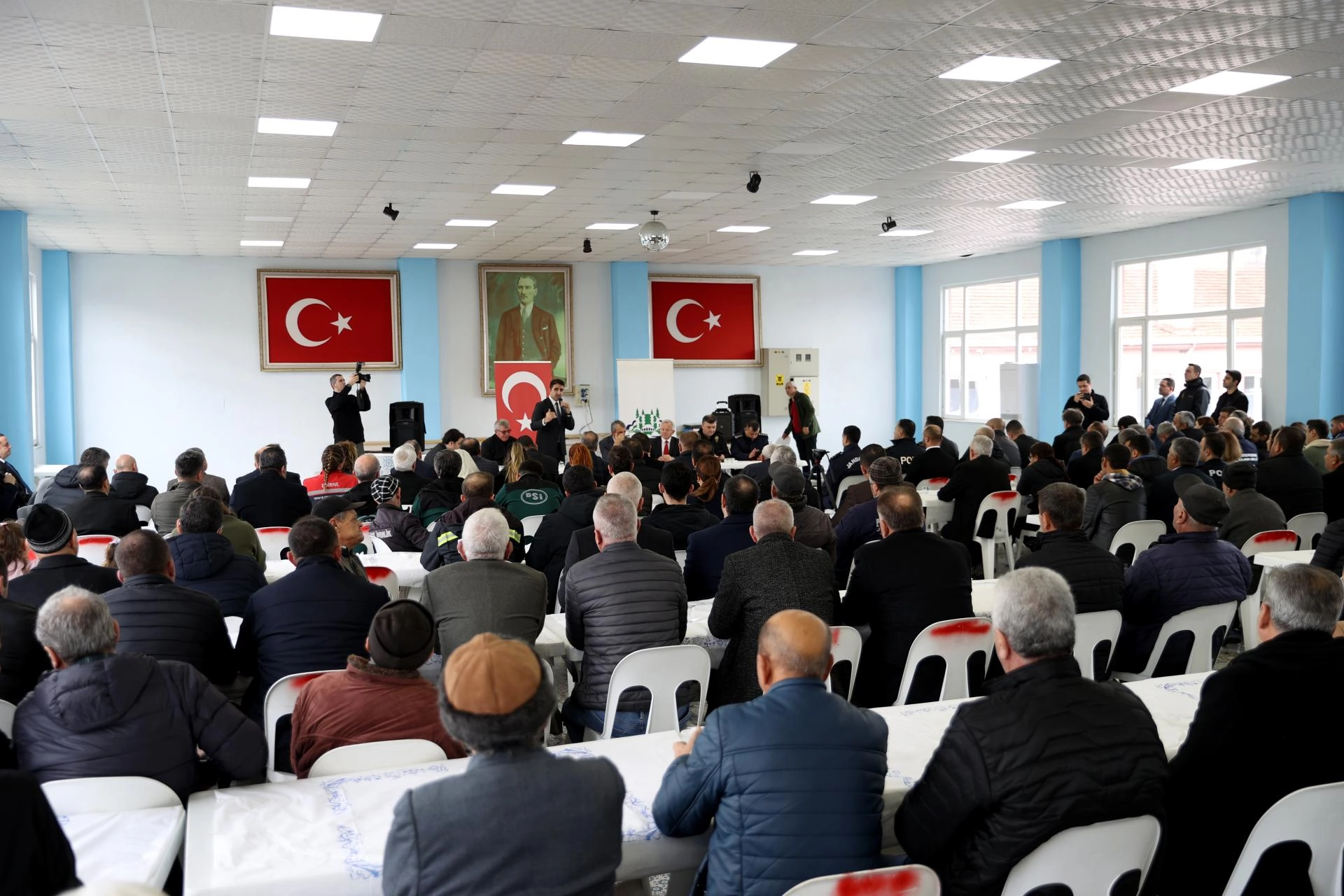 Sezer, İbriktepe köyünde bir tesiste muhtarlar ve köy sakinleriyle bir araya geldi.