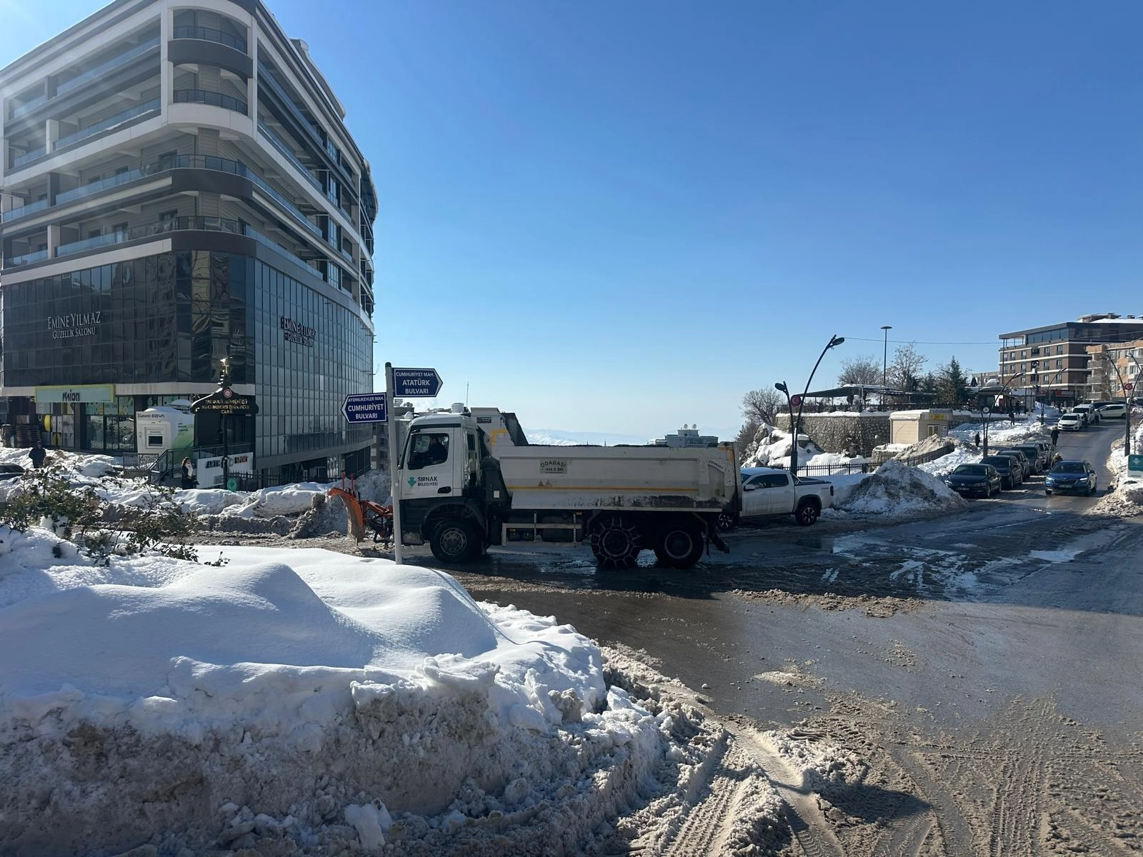 Şırnak'ta kar yağışının durmasıyla kent merkezinde temizleme çalışmaları başladı.