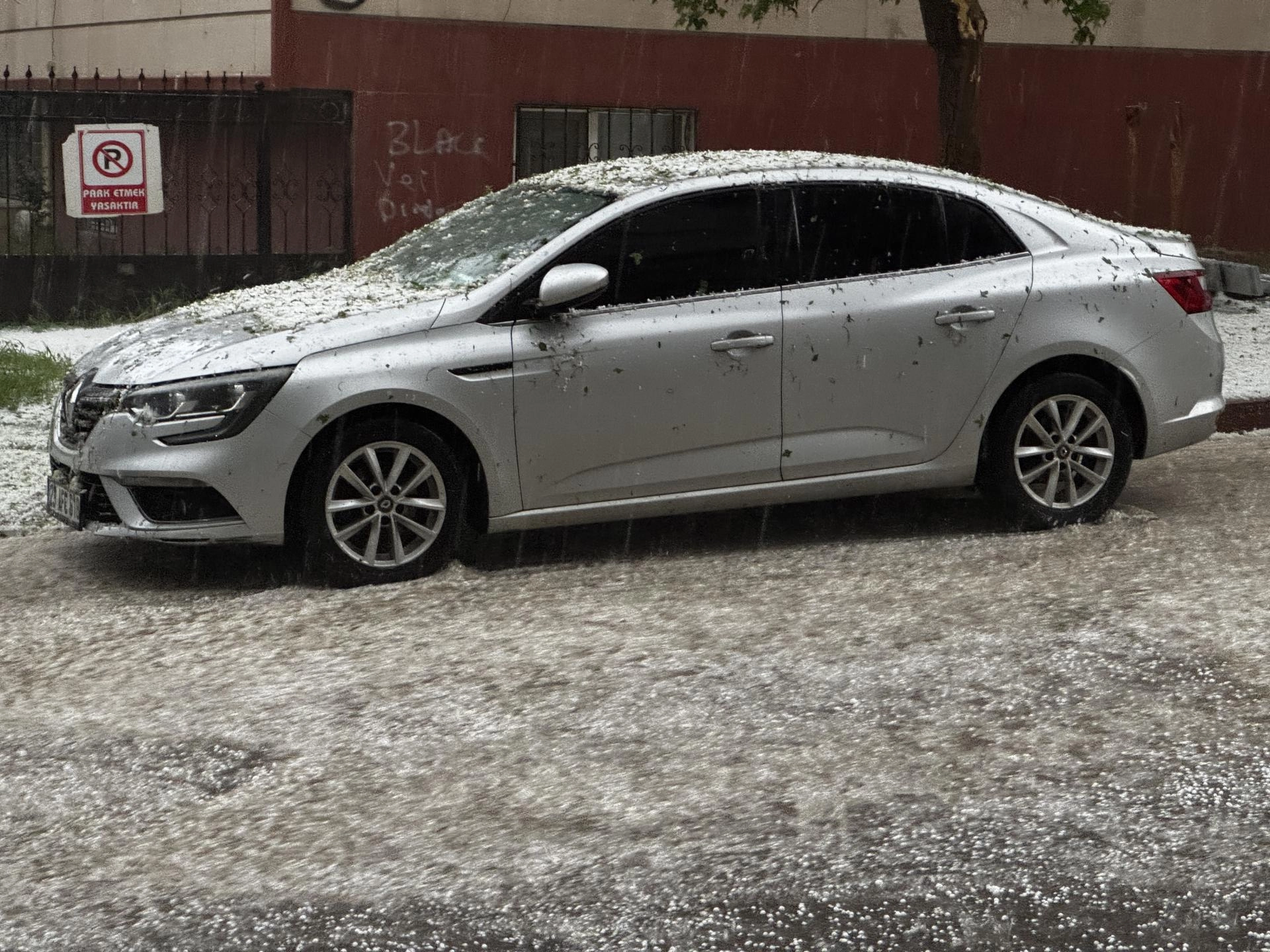 Yaklaşık 20 dakika kuvvetli bir şekilde devam eden dolunun ardından caddeler, sokaklar, kaldırımlar, araçların üstü ve evlerin çatısı beyaza büründü.