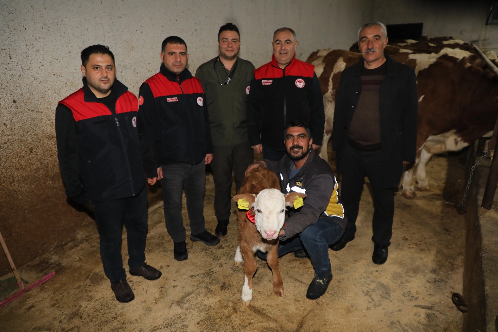 Ziyarette, anne ve buzağının sağlık kontrolleri yapıldı, buzağıya küpe takılarak kimliklendirme işlemi tamamlandı.