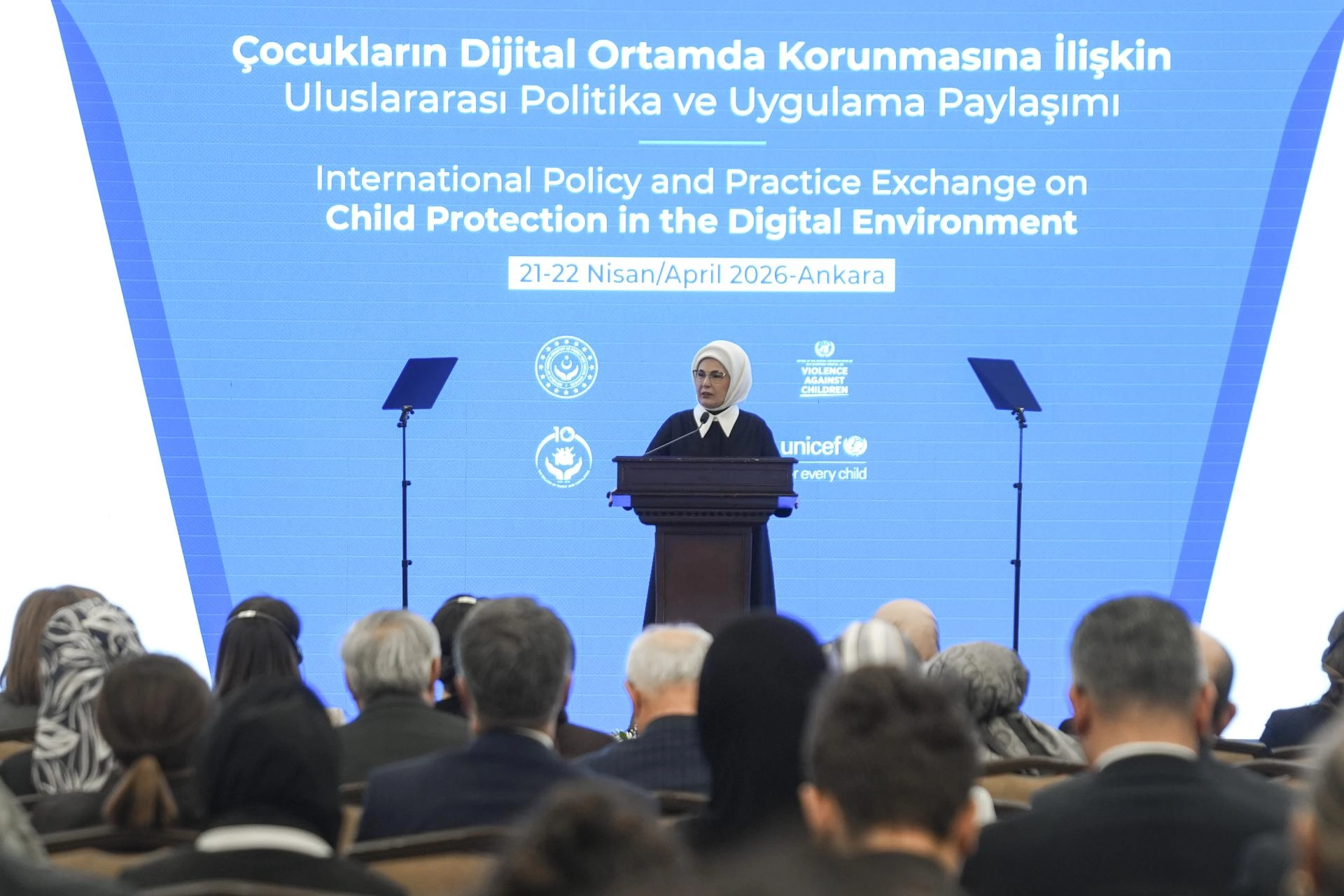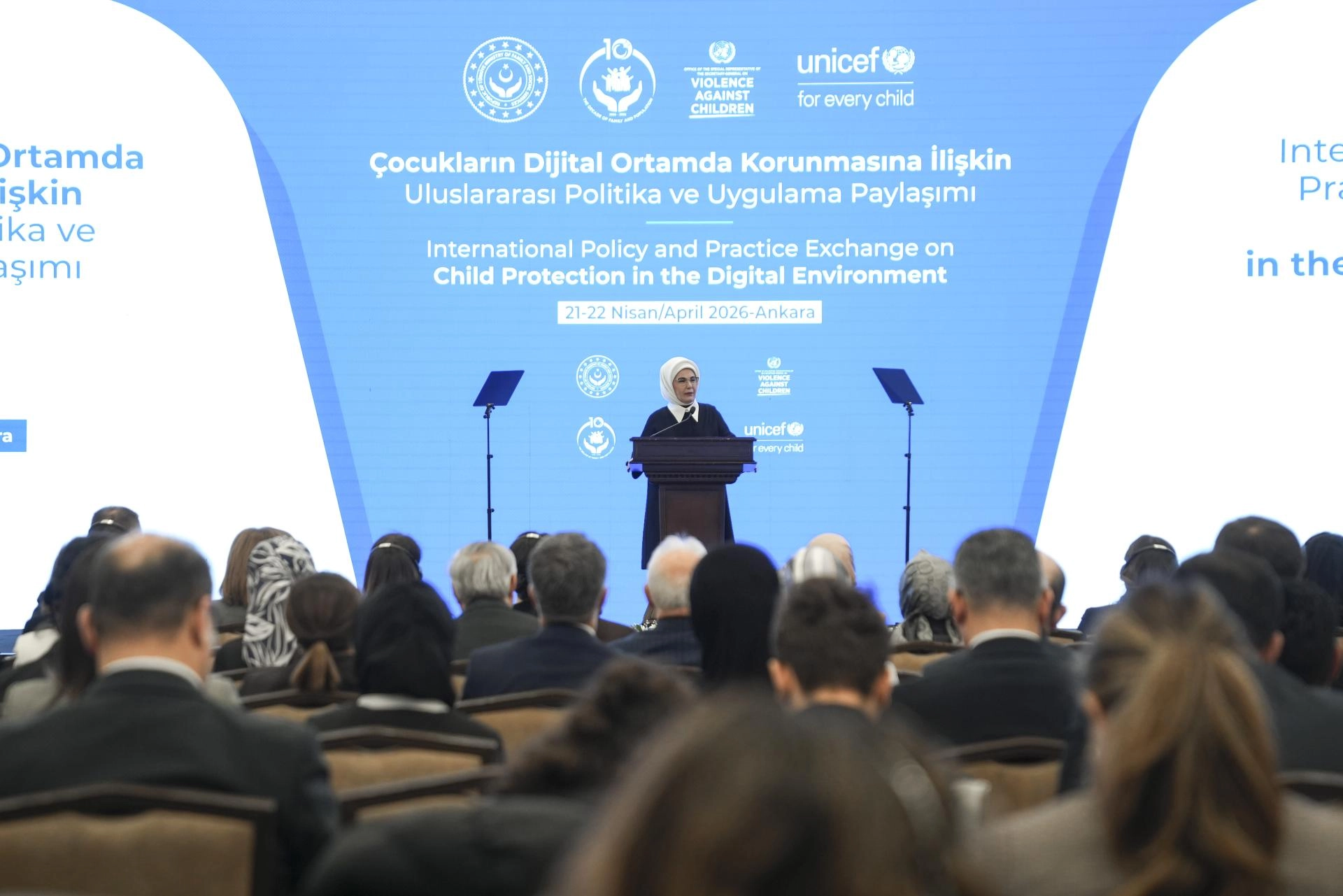 "Aile ve Sosyal Hizmetler Bakanlığımızın ev sahipliğinde, UNICEF ve Birleşmiş Milletler Genel Sekreteri Çocuklara Yönelik Şiddet Özel Temsilciliği işbirliğinde düzenlenen 'Çocukların Dijital Ortamlarda Korunmasına İlişkin Uluslararası Politika ve Uygulama Paylaşımı Programı'na katılmaktan memnuniyet duydum. Çocukların korunması ve güçlendirilmesine yönelik bütüncül politikaların, iyi uygulama örneklerinin ve uluslararası işbirliği imkanlarının değerlendirileceği toplantının çocuklarımız adına hayırlı sonuçlara vesile olmasını temenni ediyorum."