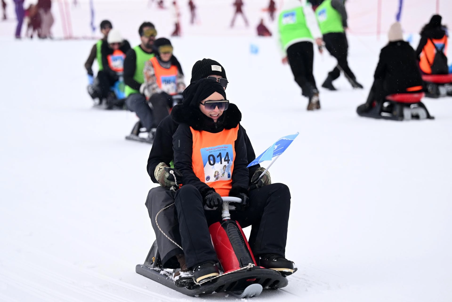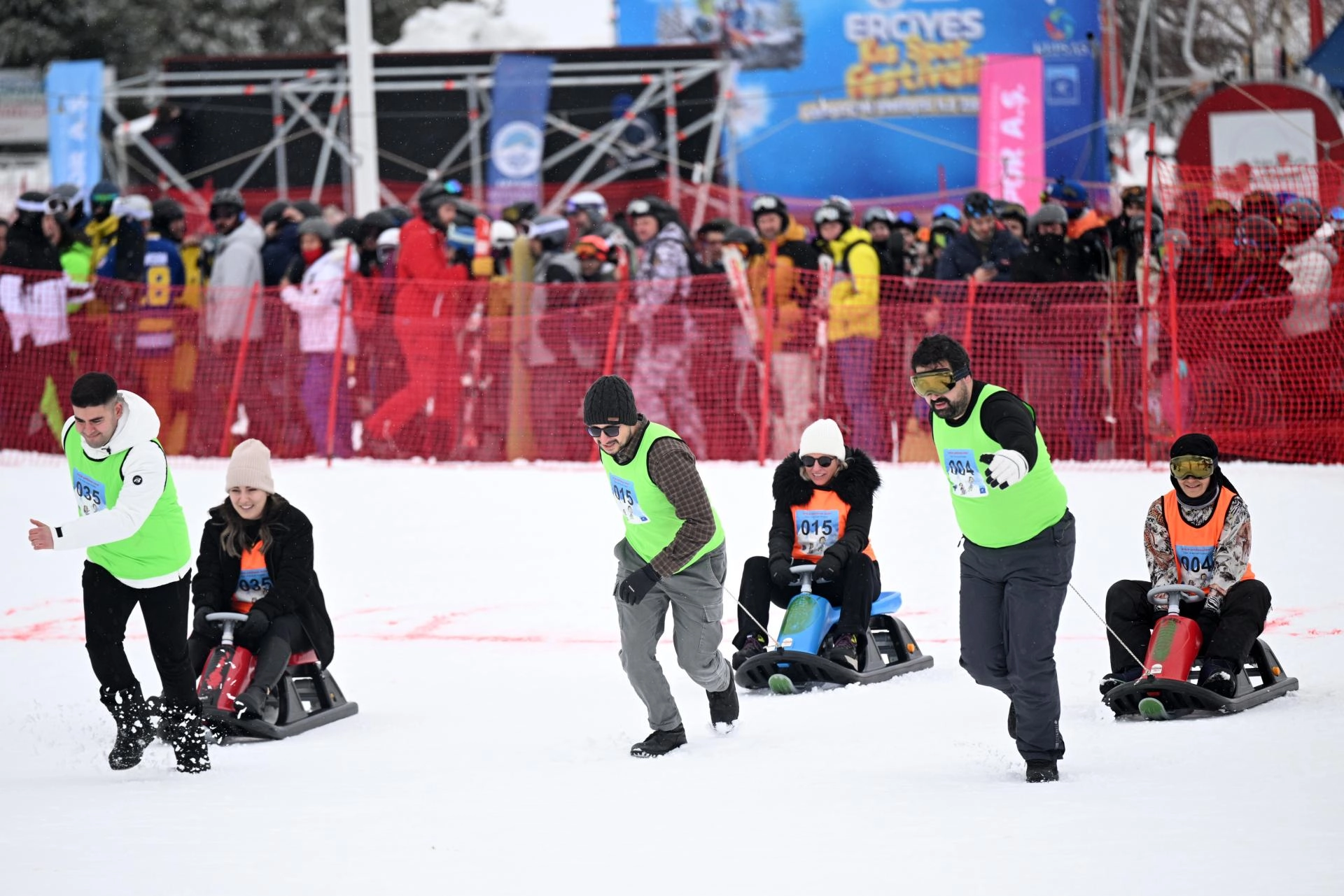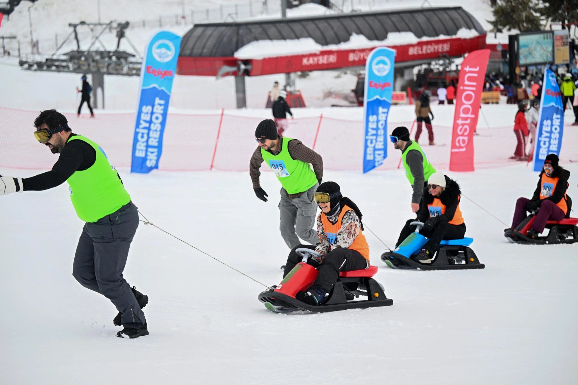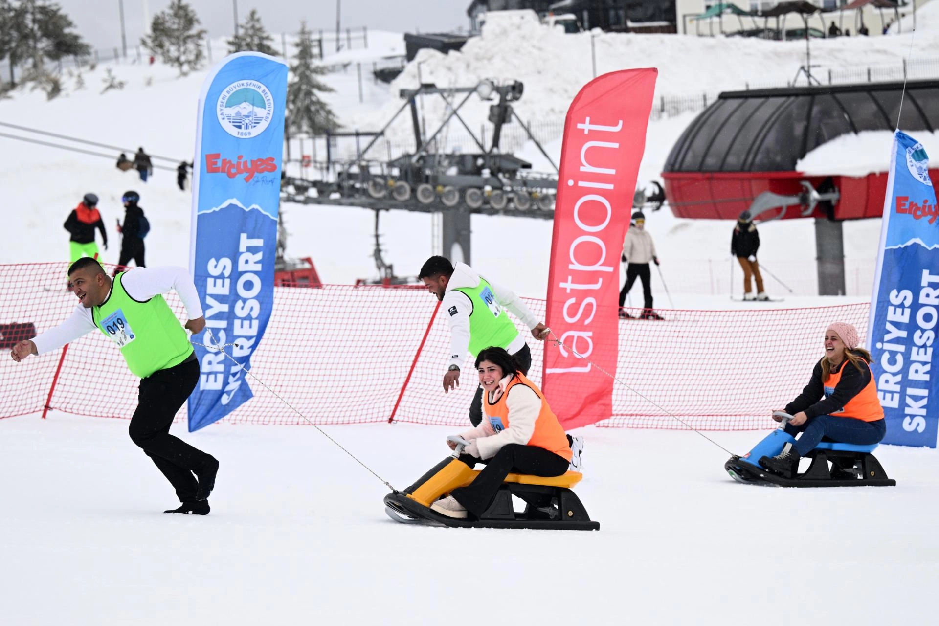 KAYSERİ (AA) - Erciyes Kış Sporları ve Turizm Merkezi'nde eşler arası ödüllü kızak yarışması yapıldı.