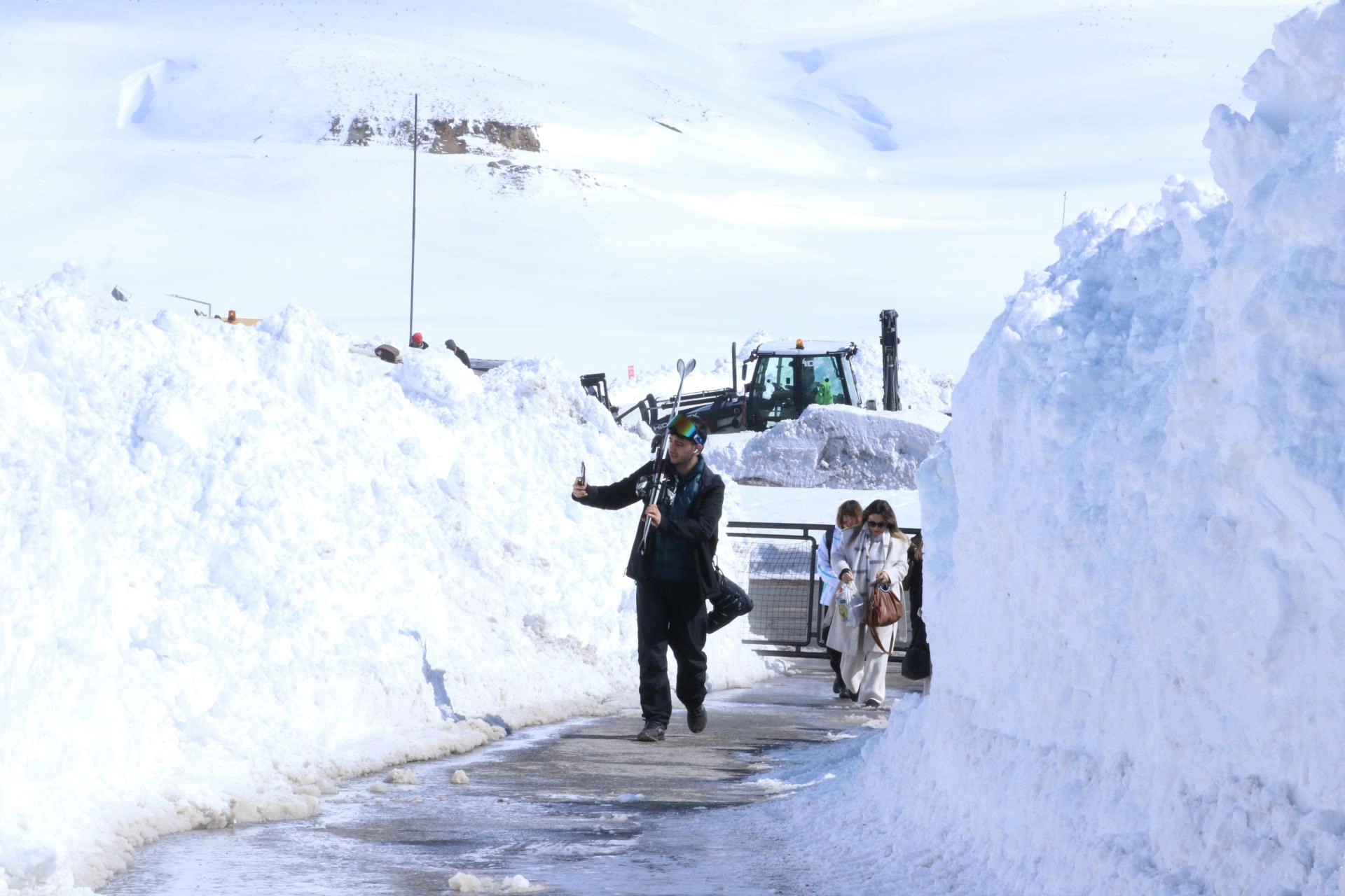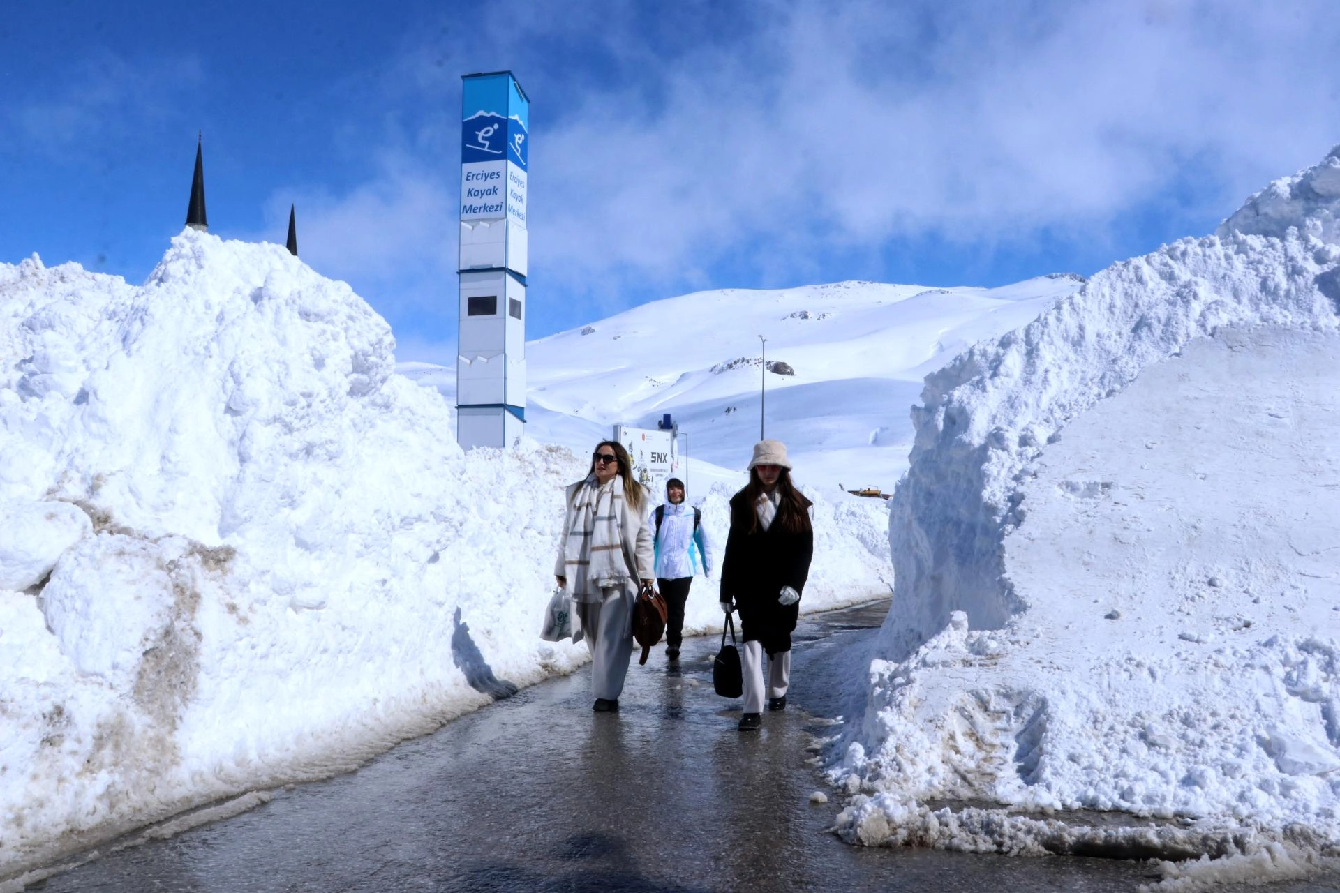 Öte yandan kayak merkezinin bazı bölgelerinde kar birikintilerinin insan boyunu aştığı görüldü.