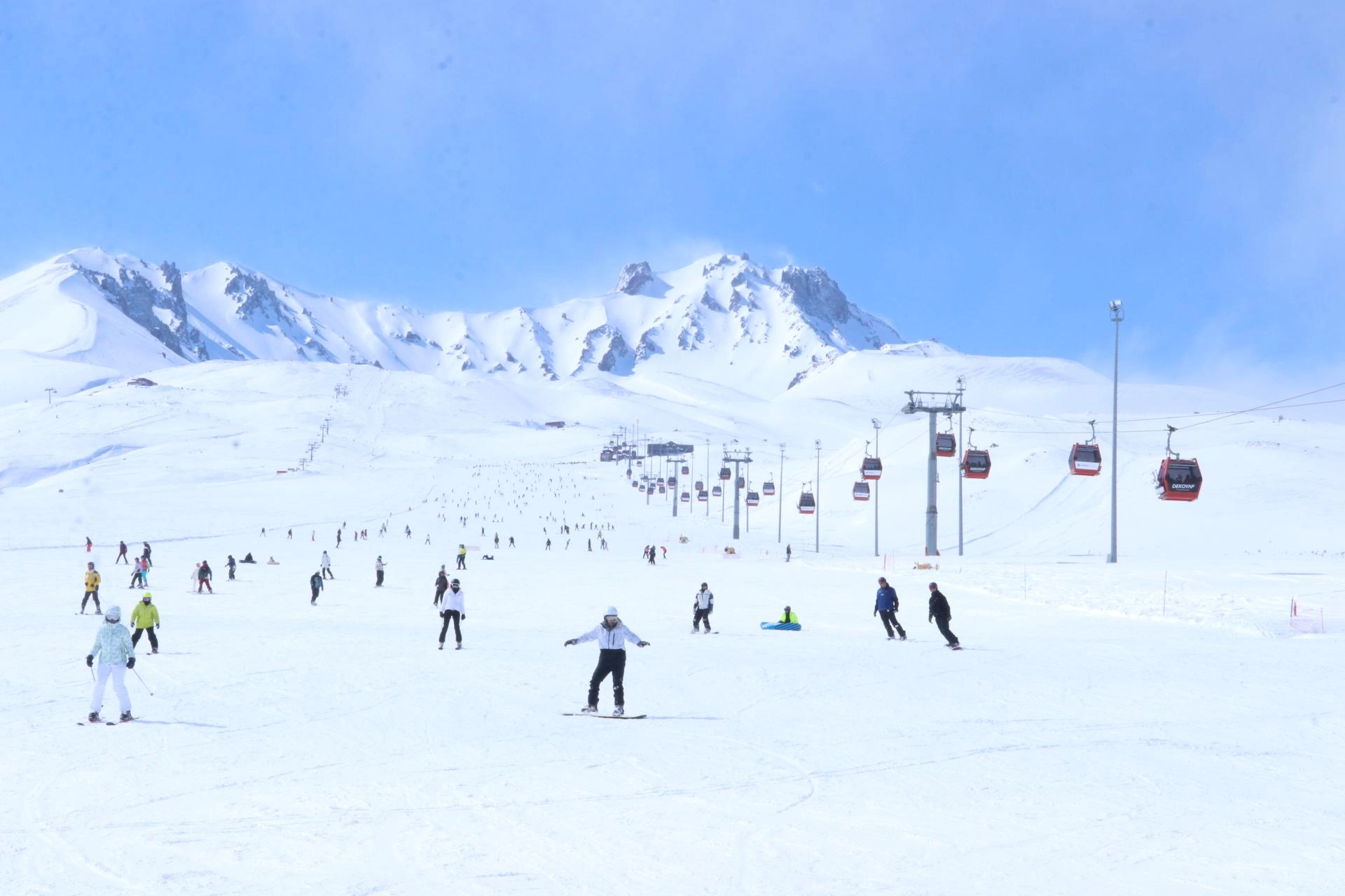 Hafta sonu tatilini Erciyes'te geçirmek isteyenler, İç Anadolu'nun "zirvesi" olarak nitelendirilen Erciyes Dağı'nda yoğunluk oluşturdu.
