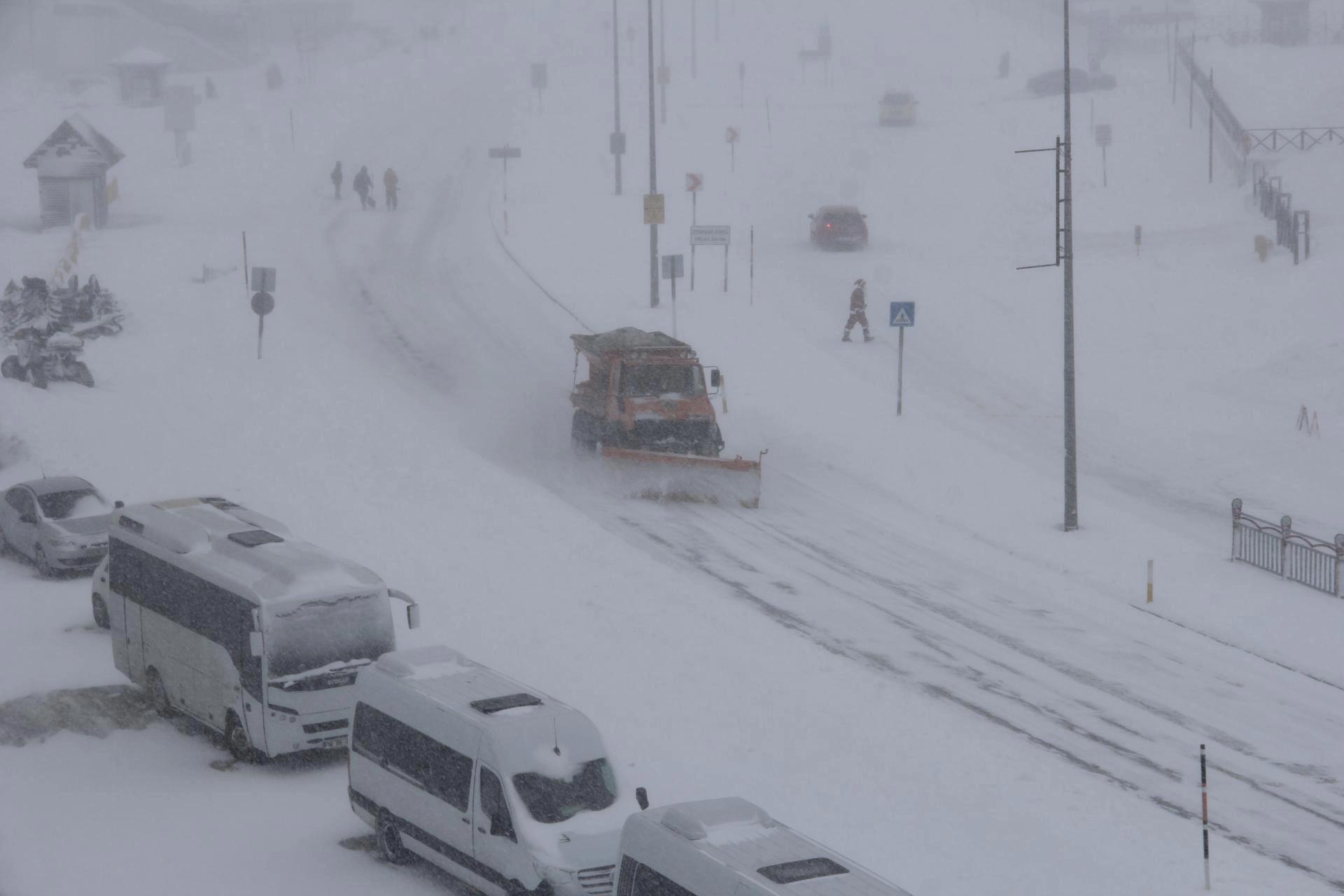 Yılbaşı tatili dolayısıyla merkezde yoğunluk yaşanırken, yerli ve yabancı turistler kar yağışı altında kayak, snowboard ve kızakla kayıyor.